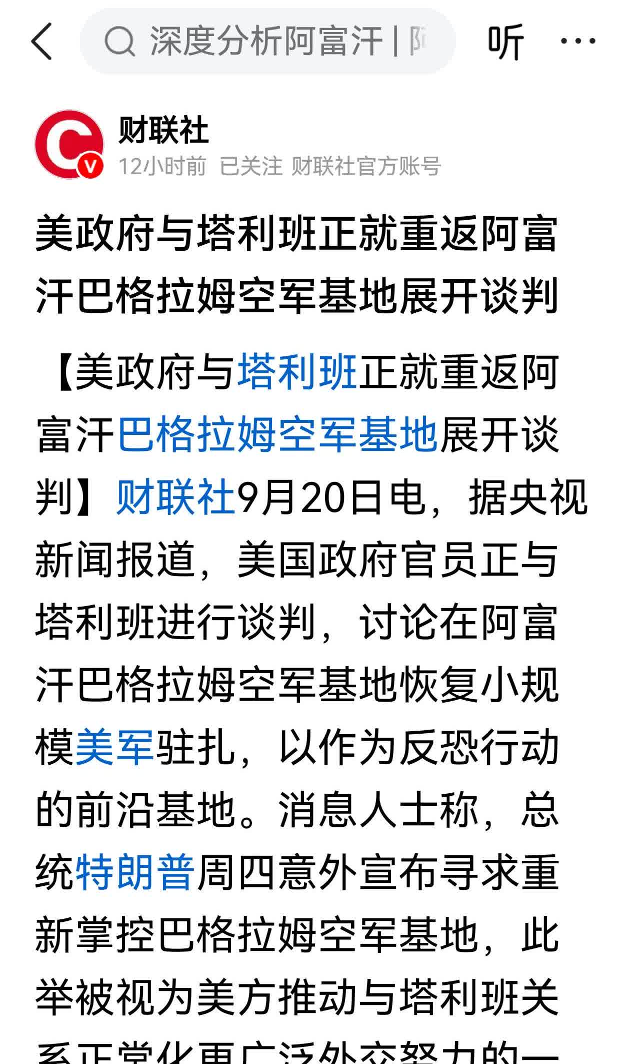 美国重返阿富汗,对我们真不是个好消息。 这应该是特朗普对巴沙签订攻守同盟协议的