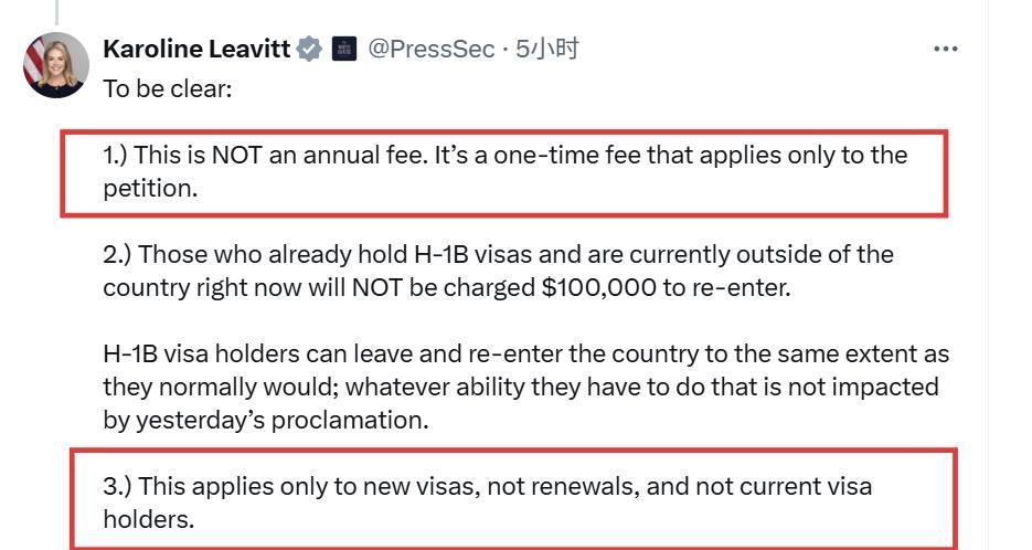 懂王现在是越来越离谱了!周末他又干了两件神事,相当邪乎。 先是周五突然宣布:将要求企业每年为每份H-1B工作签证支付10万美元,注意是每年哦~ 理由是为了激励美国企业,优先雇佣和培养本土科技人才。 听起来没毛病,但美国那些科技巨头,主要就是靠印度和中国码农撑着的,这要每人每年多10万美元的成本,那还干个毛啊。 马斯克当年就是靠H-1B签证,在美国成功创业,才有了后面特斯拉、SpaceX、X平台(推特)、xAI这一系列传奇故事。 由此可见,懂王大幅提高H-1B成本的做法,影响是巨大且深远的,许多科技企业都强烈反对,所以白宫周六紧急澄清:10万美元仅针对新申请的H-1B有效,且只征收一次,持有、续签都不收费。 换言之,新政只限制增量,不影响存量,目的就是为了让美国企业,在未来雇佣更多的本土科技人才,而不影响现有业务的正常开展。 澄清后的政策,逻辑至少看起来通顺一些,但懂王在细节未确定前就公布出来,给市场造成了恐慌,莫非他又提前开好了空单?好没6。 第二件离谱的事,懂王在接受采访时表示:自己并不希望通过战争赚钱,但事实上,美国正通过俄乌战争发大财,因为现在乌克兰的军事装备费用,是由北约支付的…… bur,这是几个意思?本来想通过促成停战拿诺贝尔和平奖,现在发觉没戏了,就鼓励双方打下去,改为持续的发战争财? 真是商人本性啊:反正要么扬名,要么取利,总得得着一个,只要出手,就绝对不能走空! 我发现懂王这人,确实难搞,他想干的几件事:关税、企业投资、限制移民、大漂亮法案、乌克兰资源,基本都算干成了,还顺带手炒股发币挣了钱,确实很擅长make deal~