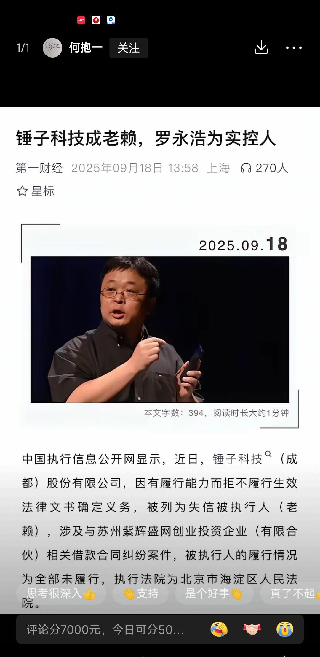 老罗的锤子科技被列为失信人,这是时间节点很蹊跷。