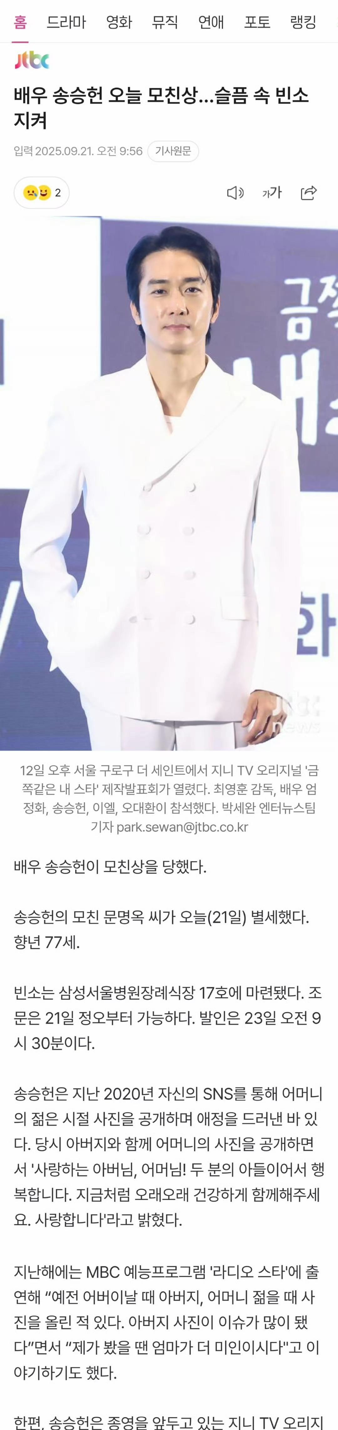 韩国演员宋承宪今日痛失慈母,在悲痛中守灵。[蜡烛]