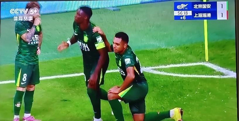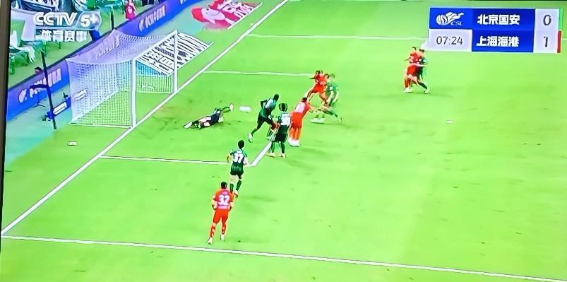 上海海港犀利的反击在第7分钟就收获进球,上港中场得球,打到北京国安禁区,李帅直塞