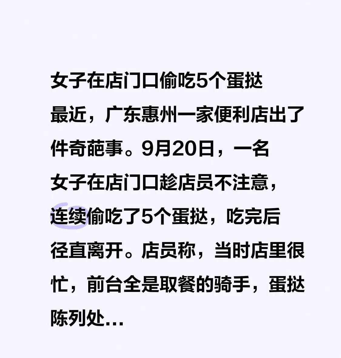 女子在店门口偷吃5个蛋挞女子店门口偷吃5个蛋挞 近日,广东惠州一家便利店发生了