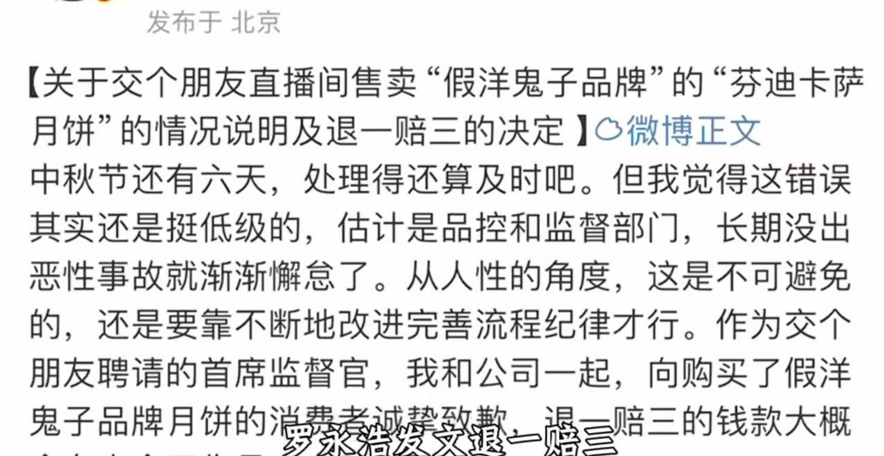 直播间货品出现问题时,罗永浩发文假一赔三,网友回:我拒绝赔三,退一即可!罗永浩不
