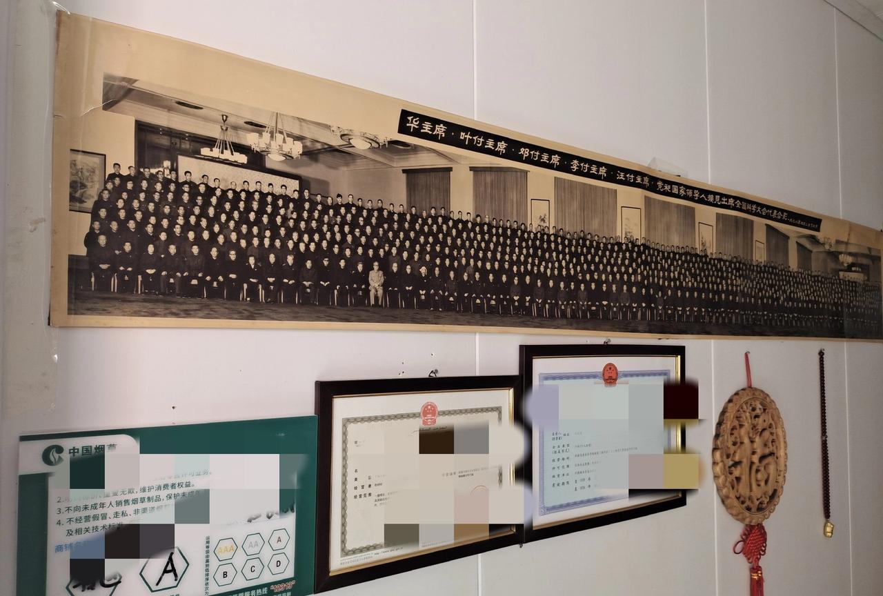 这是我在乌鲁木齐市见过最长的一张老照片,长度大概有3米。因为这张照片两头用胶带贴在一间20平米左右室内的墙壁上,我用手机斜着才能将其拍完整。 这张老照片上显示的文字是:“ 华国锋主席·叶剑英副主席·邓小平副主席·李先念副主席·汪东兴副主席·党和国家领导人接见出席全国科学大会代表合影,1978年4月2日于北京。”
