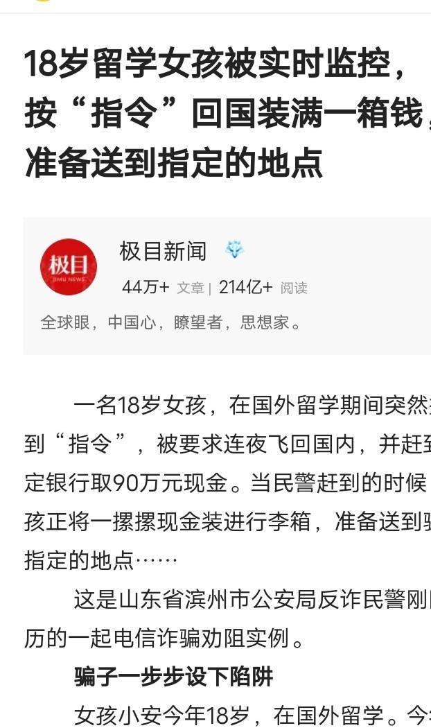 太险了!山东滨州,一女生接到骗子电话,声称她涉嫌一桩洗钱案,对此女子非常害怕,在和骗子沟通了一段时间后,她按照骗子的要求找父母要了90万,并且她还下载了一个可以实时监控她行动的APP,就在她来到指定地点滨州后,民警紧急出动,最终让这名女生悬崖勒马。 据极目新闻报道,山东民警阻止了一起诈骗案,被害人直到民警劝阻她时,才知道自己电话那一边的民警是骗子。 今年8月,小安接到自称是当地卫生局工作人员的电话,对方声称小安因为曾去过发生疫情的医院,因此有重要事情要和她沟通。 刚开始的时候,小安还有些警惕,然而对面的实在是太会骗人了,因为知道小安的一些个人情况,在骗子的花言巧语下,小安慢慢对骗子深信不疑。 趁时机成熟了,骗子直接告诉小安,说她涉嫌一桩洗钱案,还告诉她,如果她不和自己配合,那么她将会被引渡回国。 小安缺乏社会经验,一听自己可能要坐牢,也是非常慌张,于是她赶忙询问骗子该怎么办? 骗子告诉她,只要小安交纳90万的取保候审的保证金,那么小安就不会有大麻烦。 对此,小安深信不疑,于是找父母要了90万,并且还按照骗子的指令买了一张回国的机票,在买了机票后,骗子为了方便自己的骗钱行为,居然要小安和自己签订保证书,保证不向任何人泄露“案情”。 甚至骗子还让她安装了一个时刻可以监控她的行踪的软件,在这样的指挥下,小安来到了山东滨州的一家银行,准备按照骗子的指令把那90万打到所指定账户。 在小安这样照做的时候,柜员立马对小安起疑了,在得不到真实原因后,柜员立马把小安大额转账的事情告诉了当地的民警。 民警经过一番调查,发现小安是被骗子缠上了,随即他们立即采取了行动,劝阻了正在骗子指令下赚钱的小安。 那么,从法律角度,如何看待小安所遭遇的这件事呢? 根据《刑法》第266条:当行为人有虚构事实和隐瞒真相的手段,通过电话、网络、短信等方式来骗取被害人的钱财的行为,会被认定为电信诈骗罪。 在本案中,小安遭遇的骗子先是假冒自己是卫生局的工作人员,然后又编造谎言说小安涉嫌洗钱案,并自称自己是相关单位的民警,这明显属于虚构事实,想以此让小安采取错误的念头来处理她的财产,因此小安遭遇的是电信诈骗案。 那么指令小安的骗子如果被抓到,该如何量刑呢?他的诈骗犯罪情节是否恶劣呢? 根据《刑法》第266条规定:当行为人犯罪行为确定,会根据诈骗金额、诈骗细节、诈骗后果、诈骗主观恶性来考虑如何量刑。 当诈骗金额达到较大标准,也就是3000元以下,会处以三年以下有期徒刑,并处以罚款;当诈骗金额巨大时 也就是30000元至100000元时,会被拘以三至十年有期徒刑,并处罚款。当诈骗金额达到20万元以上时,会被拘役十年以上有期徒刑,并且每增加4000元,刑期会增加一个月,并处罚款或没收财产。 数额巨大,后果严重,以及冒充国家工作人员进行诈骗行为时,会被定性为犯罪情节恶劣,要处以严惩。 在本案中,小安遭遇的骗子的诈骗金额为90万,虽然最后被截胡了,但是其诈骗行为已经成为了事实,因其达到惊人的90万,因此可以说他的犯罪社会影响和后果十分恶劣。 属于案情恶劣一类的,再加上这个骗子是冒充国家工作人员行骗,这样的行骗行为符合案件极其恶劣的,因此他会加重判刑,刑期至少在10年以上。 根据《商业银行法》第六条规定:商业银行有保护客户合法权益的义务,在办理相关业务的时候,需要为客户考虑相关风险,甚至在发现客户有潜在的诈骗风险时,他们一定要向民警反映情况。 在本案中,因为小安的转款高达90万,所以柜员十分谨慎,不仅拖延了小安的转款,还选择了报警,这履行了他们对客户的监督义务。 对此,你怎么看?