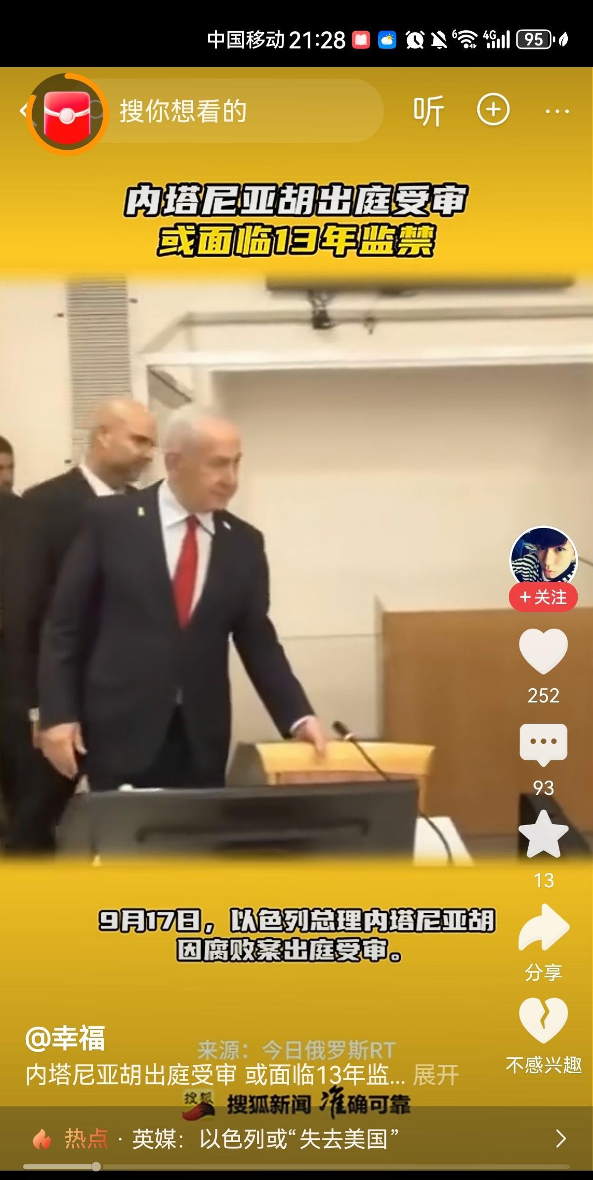 出庭受审:内塔尼亚胡怯了,因涉嫌贪腐欺诈遭指控 内塔尼亚胡出庭受审一事着实引人关注。2020年初,他因涉嫌贪腐与欺诈遭到指控,并于去年底首次以被告身份出庭。一旦罪名成立,受贿最高可判处10年监禁,欺诈和违背公众信任最高判3年。 此人行事张狂至极,在国内强力推动战争,妄图以此转移自身涉嫌受贿的事实,将自己塑造成民族英雄式的强硬人物。在中东地区四处出击,俨然一副“打遍中东无敌手”的姿态,把自己置于国际社会的对立面。 此事还引起了特朗普的注意,他在社交平台上“力挺”内塔尼亚胡,称其为“战争英雄”。倘若没有美国插手,内塔尼亚胡被收监的可能性极大,但有特朗普出面,他或许就没事了。 ~end~ #晒图笔记大赛#