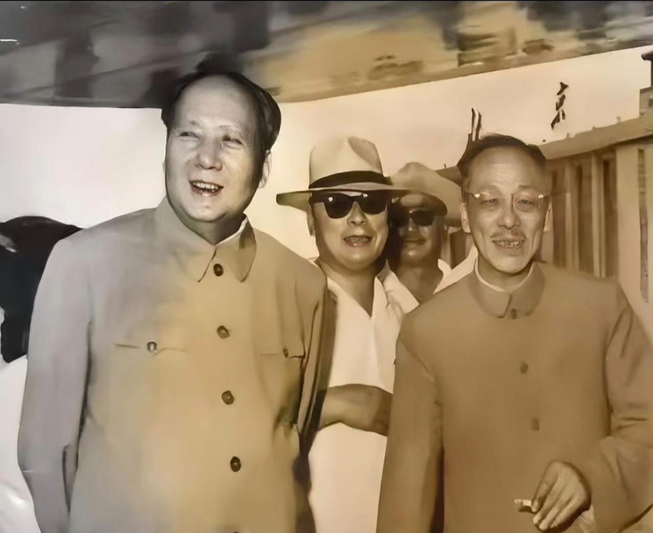 四位的一张合影,你知道陈老总后面那位戴墨镜、戴帽子的是谁吗?