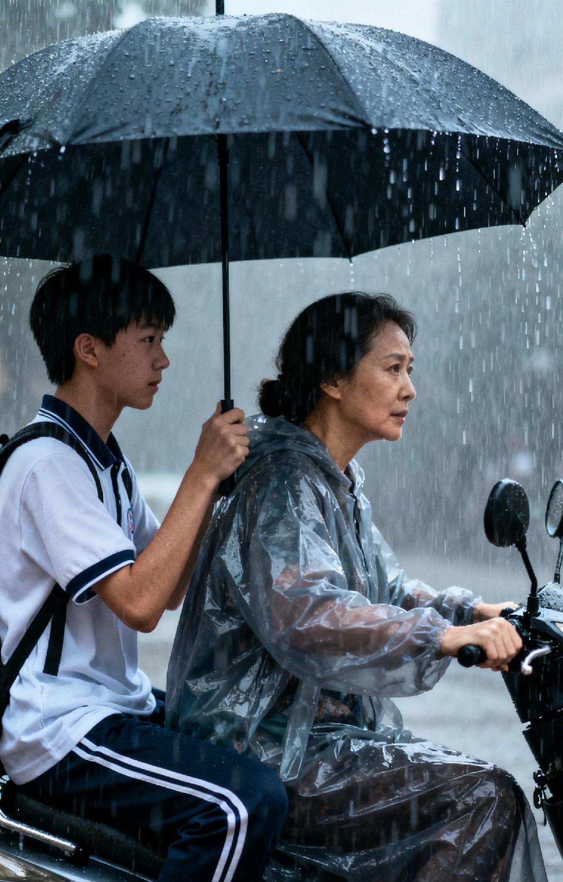 雨又下了不知道多少个小时了,从昨天开始一直到现在都没有停止过。 我一夜也不知道被惊醒了多少次,做了一夜的噩梦,早晨4点多的时候就干脆不睡了,躺在床上睁着眼睛,静静的听雨声。 早晨5点起来把粥煮上,又顺便洗了两个鸡蛋一块放进粥里煮了,6点的时候,又去喊儿子起床,今天儿子起的比较快,没有赖床,喊一遍就起来了。 儿子吃了一个鸡蛋,喝了半碗粥,然后我们就一块出门送他去上学,电梯里,儿子始终低着头,也没有给我说一句话,我也没有吭声。 出门的那会下的很大,路上也有很多的积水,我骑着车,儿子在后面撑着伞,路过积水深的地方,由于车骑的有点快,我两只鞋兜里都被水浇湿了。 送到地的时候我看到儿子的一双鞋也全湿了,两条裤腿也都湿了半截,但他并没有吭声,背起书包头也不回的走了,要赶以前他肯定又被气的哇哇叫了! 可他今天并没有吭声,从早上起床一直到送到学校他都始终没有说一句话,也许他是被我昨晚的情形吓着了,是的,他一定是被吓着了!因为上一篇文章里我没敢提,就是我昨晚在情绪最激动的时候冲进了厨房,然后拿起一把d又冲了出来! 那一刻儿子吓的脸色苍白,我哭的撕心裂肺,就在那一刻我的手麻木的失去了知觉,d也在我的手中滑落了,差点砸在我的脚上。 那一刻我绝望到了顶点:与其这样痛苦的活着,不如一了百了! 图片由AI生成。