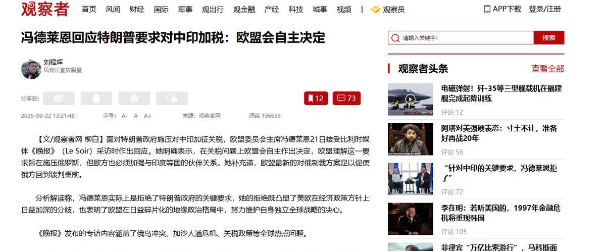 特朗普逼欧盟对中印下加税!冯德莱恩的回答让他意想不到:欧盟的决定自己做,不陪着瞎折腾! 特朗普这招也太离谱了!张口就要欧盟给中国、印度加100%的关税,美其名曰“不让中印买俄罗斯能源”,这哪是提要求啊,分明是把欧盟往火坑里推,真这么干,欧盟自己先得赔个底朝天,当谁傻呢? 结果冯德莱恩直接没接这茬,对着比利时媒体就说 “欧盟得自己拿主意”,这话听着软乎乎,实则硬气得很!明眼人一看就懂:想拉着咱当枪使,门儿都没有! 欧盟为啥不敢听特朗普的?先说说印度那头 —— 欧盟正琢磨着年底前跟印度签个做生意的大协议呢,现在加 100% 关税,这协议不就黄了? 欧盟还想靠印度撑场面,哪能这会儿得罪人?这笔账,他们算得门儿清。 再看咱中国这边,虽说冯德莱恩没明提,但欧盟心里比谁都有数!多少欧盟企业指着跟中国做生意吃饭啊? 汽车、奢侈品、机器设备,每年往中国运多少货?真加了税,这些东西还卖得动吗?那不是断自己财路?欧盟可精着呢,才不做这赔本买卖。 可欧盟也不敢真跟美国闹僵,冯德莱恩自己都算过:欧盟每年给美国卖的货,值老多钱了,多少人的饭碗就靠这个! 要是听特朗普的加了税,回头美国再报复搞贸易战,欧盟的就业就得崩 —— 这锅她可背不动,哪敢拿老百姓生计冒险? 不过最让人不齿的是,欧盟还玩两面派!一边说不跟特朗普瞎折腾,一边又偷偷给中国下绊子。 之前对俄制裁,就把咱两家金融机构列进去找茬,结果咱立马反制,禁了欧盟两家银行的交易,他们也没敢再作妖;现在又搞新制裁,还想针对中国公司,真当咱好欺负? 其实欧盟现在就是两头为难:想靠美国帮乌克兰,不敢彻底得罪;可又不想被美国绑死,丢了中国、印度这么大的市场。 再说了,特朗普那 100% 关税的要求本就没谱 —— 欧盟连个正当理由都找不着,更别说真有那心思干了,说白了特朗普就是故意提个不可能的要求,等着欧盟拒绝,他好顺理成章不推进对俄制裁,欧盟才不上这当! 说到底,欧盟这么做就是怕自己吃亏!不想当美国傀儡,又不敢跟中印撕破脸,只能在中间打太极。 特朗普想拉着欧盟针对中国,那是打错了算盘 —— 欧盟心里门儿清,跟中国搞对抗没好果子吃,真把咱惹急了,以后想再好好做生意,可就没那么容易了!