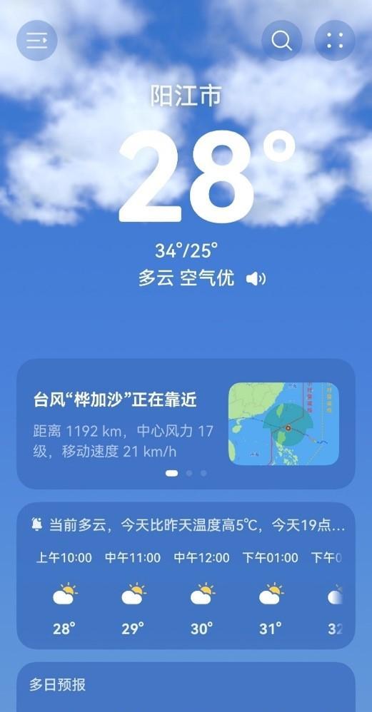 作为一个从小听着风声长大的本地人,“超强台风”这四个字,对我们来说分量太重了。它不仅仅是天气预报里的一个名词,更是一段段关于狂风、暴雨、甚至停水停电的深刻记忆。所以,当这两天新闻里开始密集播报“桦加沙”是“超强台风”级别时,那种熟悉的、混杂着紧张和一丝不安的感觉,还是不由自主地涌了上来。 小时候的是看电视的天气预报,每天定点蹲守,后来就主要靠在手机上搜一搜,对比一下各家新闻,再拼凑组合成自己想要的信息,还是比较麻烦的。最近在小伙伴的推荐下,我换了Pura 80手机,我发现向右一滑的负一屏竟然有“台风动态卡片”! 台风信息不再需要我去“扒”,而是主动、清晰地呈现在我面前。 而点开卡片,我可以在地图上看到详细的台风实时路径,以及中心位置、中心气压等台风详细情况,这次的“桦加沙”最大风速竟然高达62米每秒!总之让我对台风的各种情况有更立体的了解。我立刻给家里人打电话,让他们开始检查门窗,把阳台的东西收好。因为这个台风动态告诉我,我们还有一些时间从容准备。后来问小伙伴才知道,这个功能是他之前顺手帮我设置好的! 大家也可以在手机桌面右滑进入负一屏,在设置-动态管理内,打开位置权限,开启台风预警,这样就能看到“台风动态卡片”了,尽可能让生活少受台风影响。 #鸿蒙5大有不同# #鸿蒙越用越香##华为负一屏# #华为智慧助手·今天#