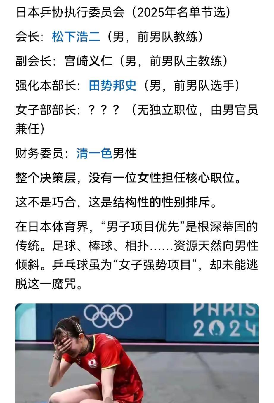 早田希娜哭着的一句我们值得被公平对待,道出了日乒协会大男子主义情结是有多严重啊? 网球:ATP/WTA为选手提供差旅补贴。 田径:钻石联赛包机票酒店。 电竞:主办方包机接送。 而日乒协会只给好的男子选手报销差旅费用,日乒一姐们如伊藤美诚、早田稀娜、平野美宇、张本美和都是自费的。