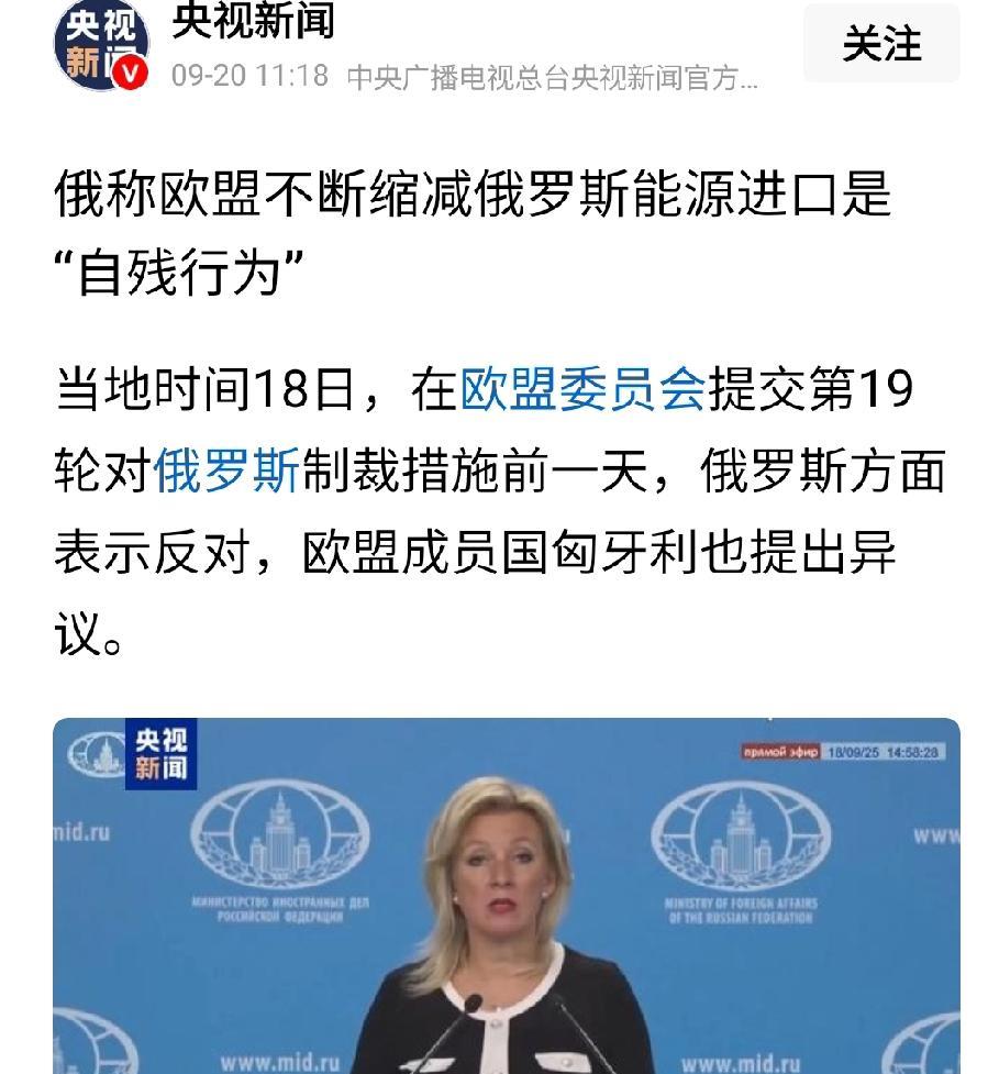 俄罗斯称欧盟不买俄罗斯的能源是自残行为。俄罗斯就是心太好了,就让欧盟自残啊,何必