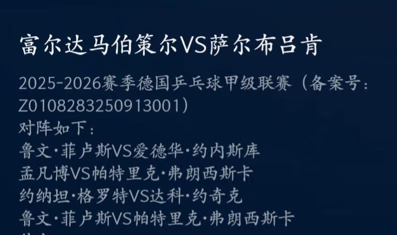 今晚凌晨一点,樊振东所在的 萨尔布吕肯俱乐部有比赛, 但此次比赛,樊振东 不会像