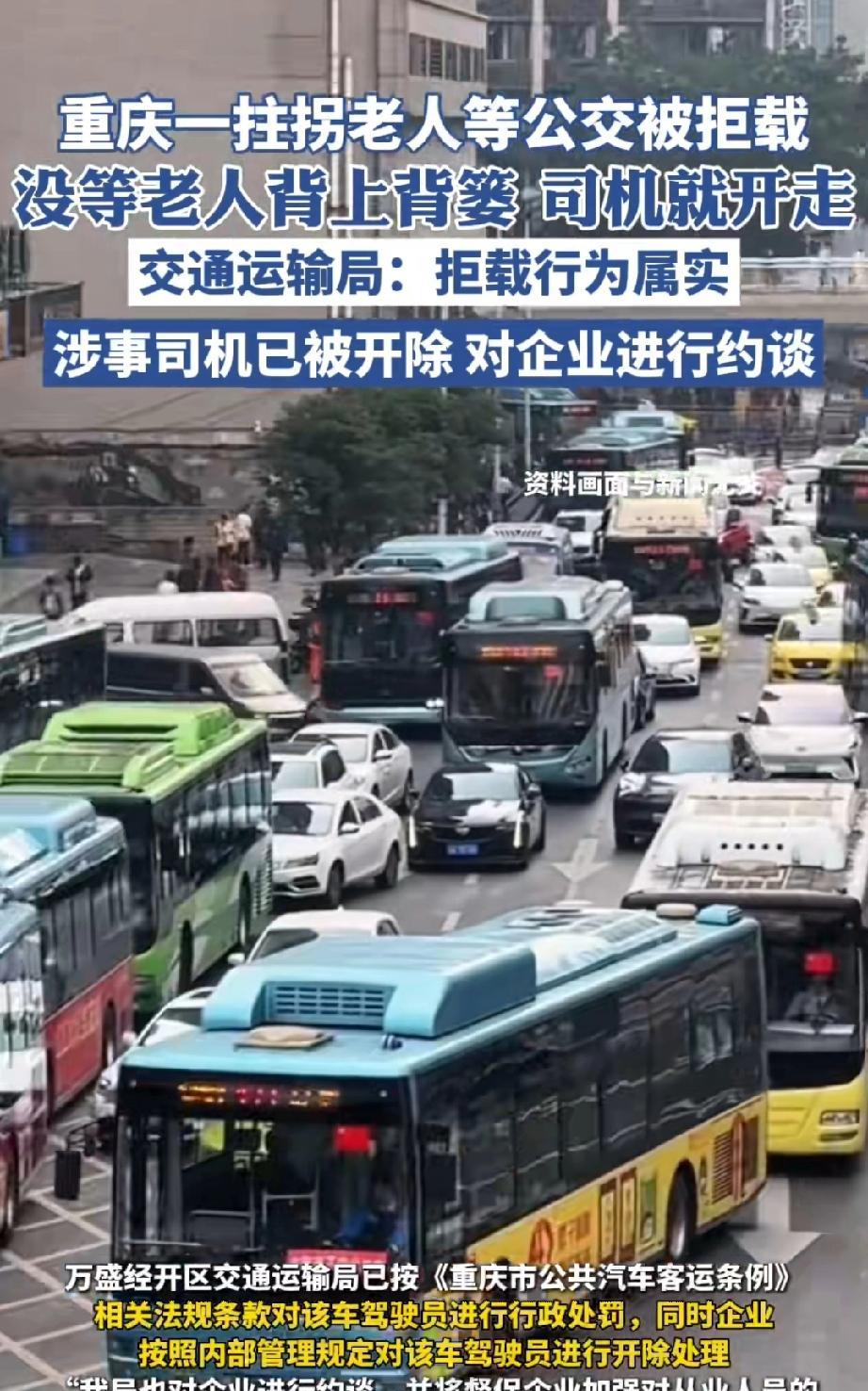 重庆无良公交司机因拒载拄拐老人上车,已被开除。 近日,在重庆,一位老人拄着拐杖、