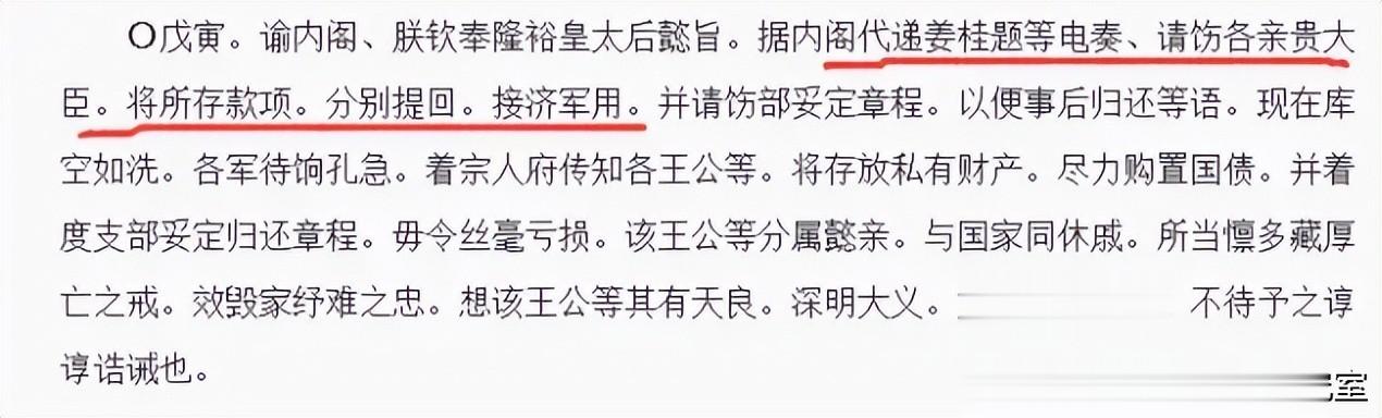 武昌起义后,国库已经拿不出钱了,为筹集资金,清廷发行了“爱国公债”,希望王公贵族们能够购买,为国效力。