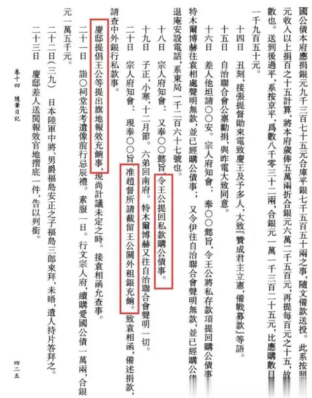 奕劻急于存款,被迫以每月二厘的低息存入。