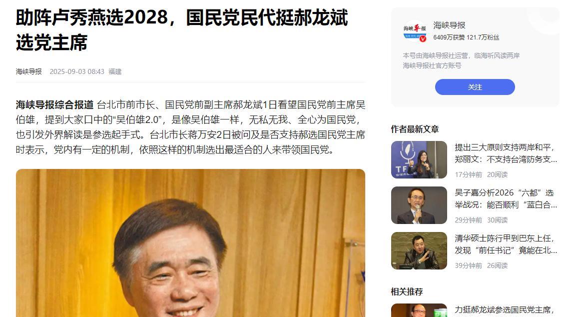 虽然很多人不愿接受,但国民党主席选举已经没什么悬念了,基本上就是郝龙斌了。 别觉得是瞎猜,你瞅瞅他的靠山、选举里的猫腻,再看大佬们的态度,就知道他赢定了,压根不是靠啥真本事,全是资源和私下运作撑着。 先说他的家底,这可不是一般人比得了的,他爹以前是国民党副主席,在党内混了一辈子,人脉早跟蜘蛛网似的铺满台湾了。 前阵子他特意去看前主席吴伯雄,还说要学吴伯雄 “无私无我为党”,这话听着好听,其实就是拉吴伯雄背后的老势力。 吴伯雄在老党员里威望高,好多人都买他的账,郝龙斌这么一走动,老党员的票基本就攥手里了,反观张亚中他们,没这层家族关系,想撬动这些资源?门儿都没有! 再说说国民党选举的规矩,跟咱想的 “选领导” 完全不一样 —— 不看老百姓认不认,就看党内 34 万有投票权的党员。 可这里面藏着大猫腻,有好多 “人头党员”!这些人平时连党会都懒得去,党费都可能是别人替交的,选举时别人让投谁就投谁,跟提线木偶似的。 张亚中不就直接戳破了嘛,说郝龙斌跟赵少康搞 “密室交易”,说白了就是俩人私下分好,把这些人头党员的控制权抢过来了。 34 万党员里,这种听指挥的可不少,郝龙斌握着这些票,还没选就赢了一半!普通党员就算想投别人,那点票根本掀不起浪花。 大佬们的态度更明显,都在给郝龙斌铺路,台北市长蒋万安被问支不支持他,没明说 “行”,但说 “按党内机制选合适的人”。 这话听着中立,其实就是默认 —— 国民党的 “机制” 向来偏向有资源的人,郝龙斌刚好符合,蒋万安这是变相给支持。 还有民代林思铭,更直接,说郝龙斌能帮卢秀燕2028年参选,还夸他“搞行政、管党务都有经验”,这明摆着是党内早算好了,选郝龙斌对他们后续选举有好处,大家自然帮他站台。 更关键的是,国民党现在那烂摊子,也就郝龙斌能扛,罗明才都说了,当主席得管三件事:没钱、跟民代沟通、拉年轻人。 国民党每月要花 3 千万新台币,穷得快揭不开锅了,郝龙斌靠他爹的商界人脉,搞钱比别人容易。 跟民代他也熟,不用从头打交道;拉年轻人虽然差点,但至少能靠资源搞点活动,比只会喊口号的强。 可能有人会说,郝龙斌之前骂柯文哲狠,会不会影响 “蓝白合”? 但台中市议会的李中早说了,“政治是妥协的艺术”,还说当主席得 “顾大局”,这就是帮郝龙斌圆场 —— 意思是他能改态度,这点小事拦不住他。 所以你看,郝龙斌能赢,不是他多厉害,是国民党的选举机制就为他这种 “资源大户” 量身定做的。 派系、人头党员、大佬背书,这些加起来,别人根本比不了。 别盼着有黑马了,这选举早定得差不多了,最后大概率就是郝龙斌上台 —— 说到底,还是国民党老一套,资源多的说了算,普通党员的意见?早被扔一边了!