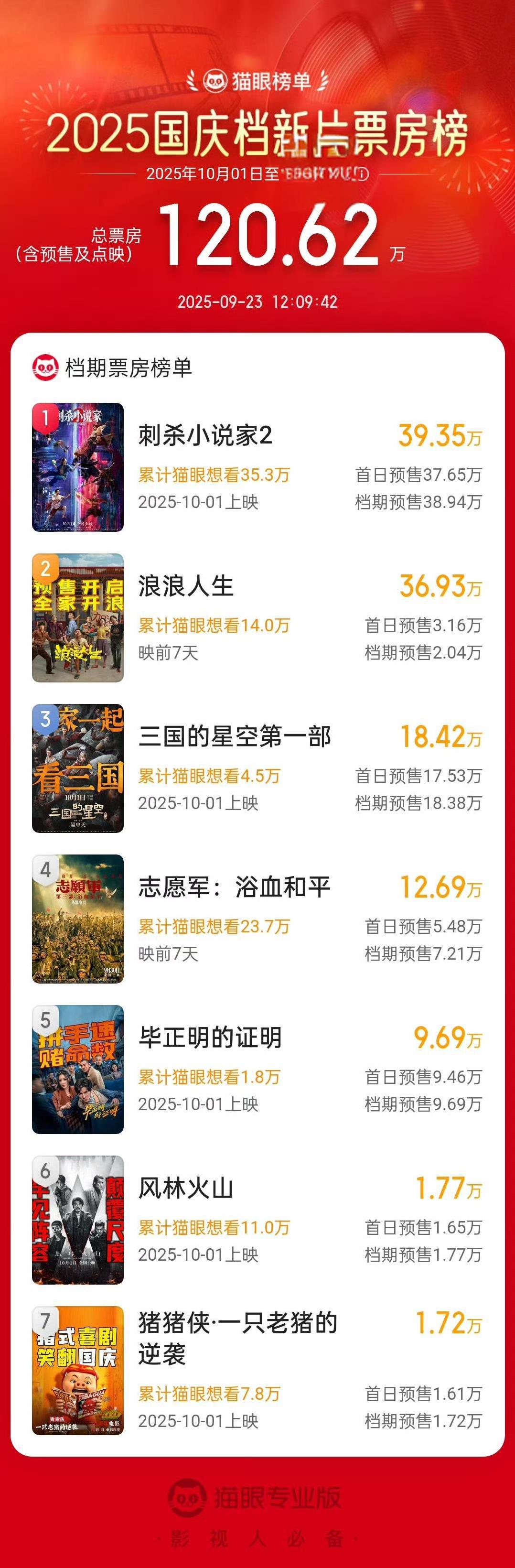 买好1号三国的票了,买了5张,支持一下檀老师第一部配音的动画电影,可以在假期第一天就能去现场听檀健次开拓的新领域,顺便学习一下中国灿烂的中华文明,听说有好的故事,好的视觉画面,好的歌曲还有彩蛋,期待期待,带着家人朋友去感受一波! 话说场次真的好少呀,而且还都是小厅,可惜了,希望后续口碑发酵一下能增加排片吧!三国首日排片才10.2%,但是表现好像蛮强劲的,加油加油加油! 第一次意识到排片的重要性,今天想买三国的星空的电影票,结果发现10公里内没有影院安排,直接没有购票的可能,虽然还不是正式上映,但忽然明白了排片是多么重要,然后刚刚终于附近有个影院出安排了,就赶紧买了! 我本来也是想等4号一起看《震耳欲聋》再顺便看《 三国的星空 》的,然后打开看了一下预售三国的影院好少啊!我们这里就一家影院有,就一个场次,所以还是买了1号的,怕4号都不剩什么排片了! 震耳欲聋还没开启预售,今天看到好多说要不要抢电影票的评论! 小炭火:我点开晚了买不到,想提早买,我太相信小炭火们的实力了,上次演唱会我点进去就没有了,谁知道震耳欲聋还没开! 可爱的小炭火们,这是被檀健次演唱会给整得怀疑人生了,不至于不至于,电影票不至于咋可能抢光!要是真的抢不到那才好呢? 所以前期预售很重要,如果想看的人多的话,院线肯定会开新的厅!前几天都在等震耳欲聋定档,现在都在翘首以盼等预售开启!
