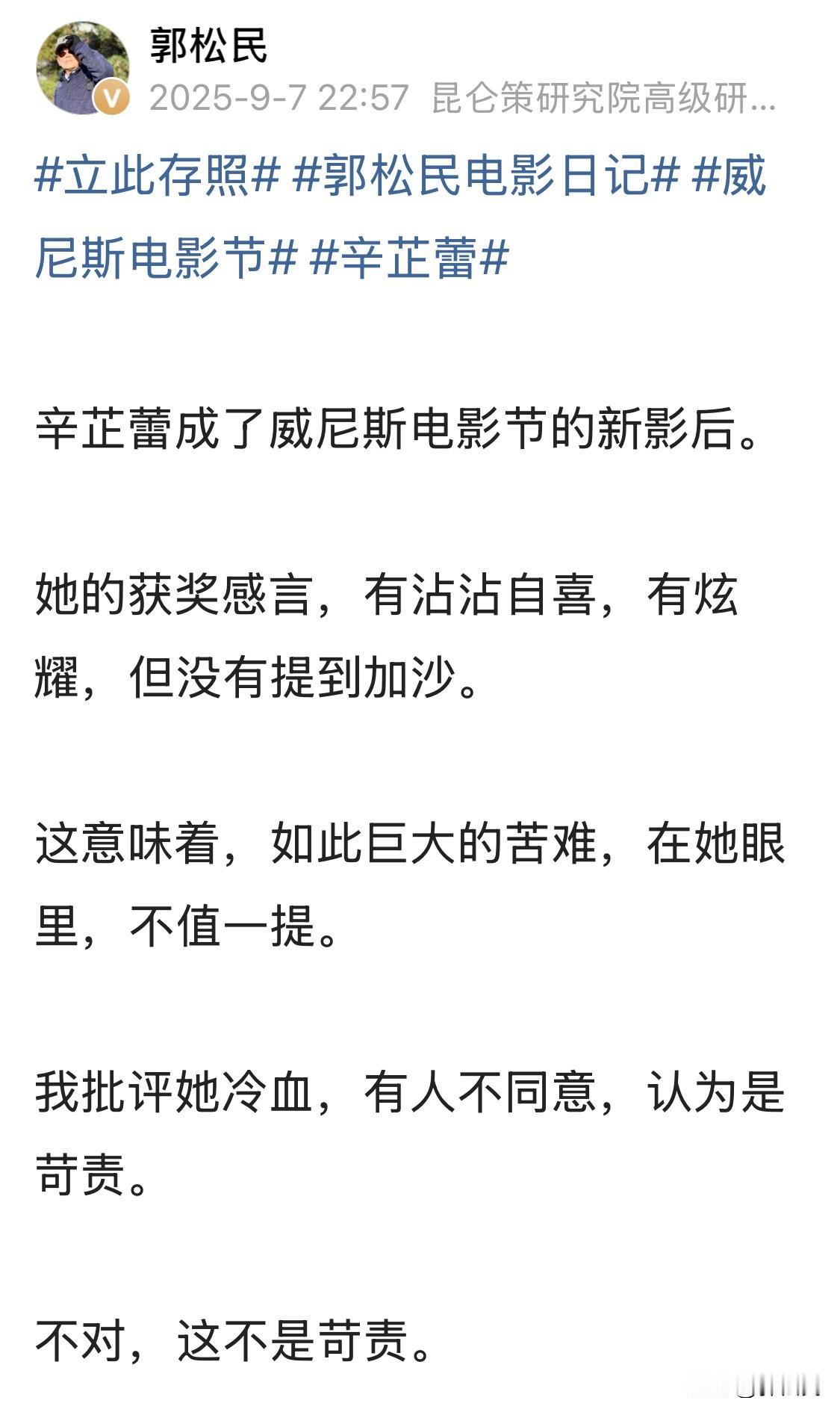 勇敢的、有正义感的女演员才是最美丽的。 那些犬儒的、冷血的、精致利己的明星,无