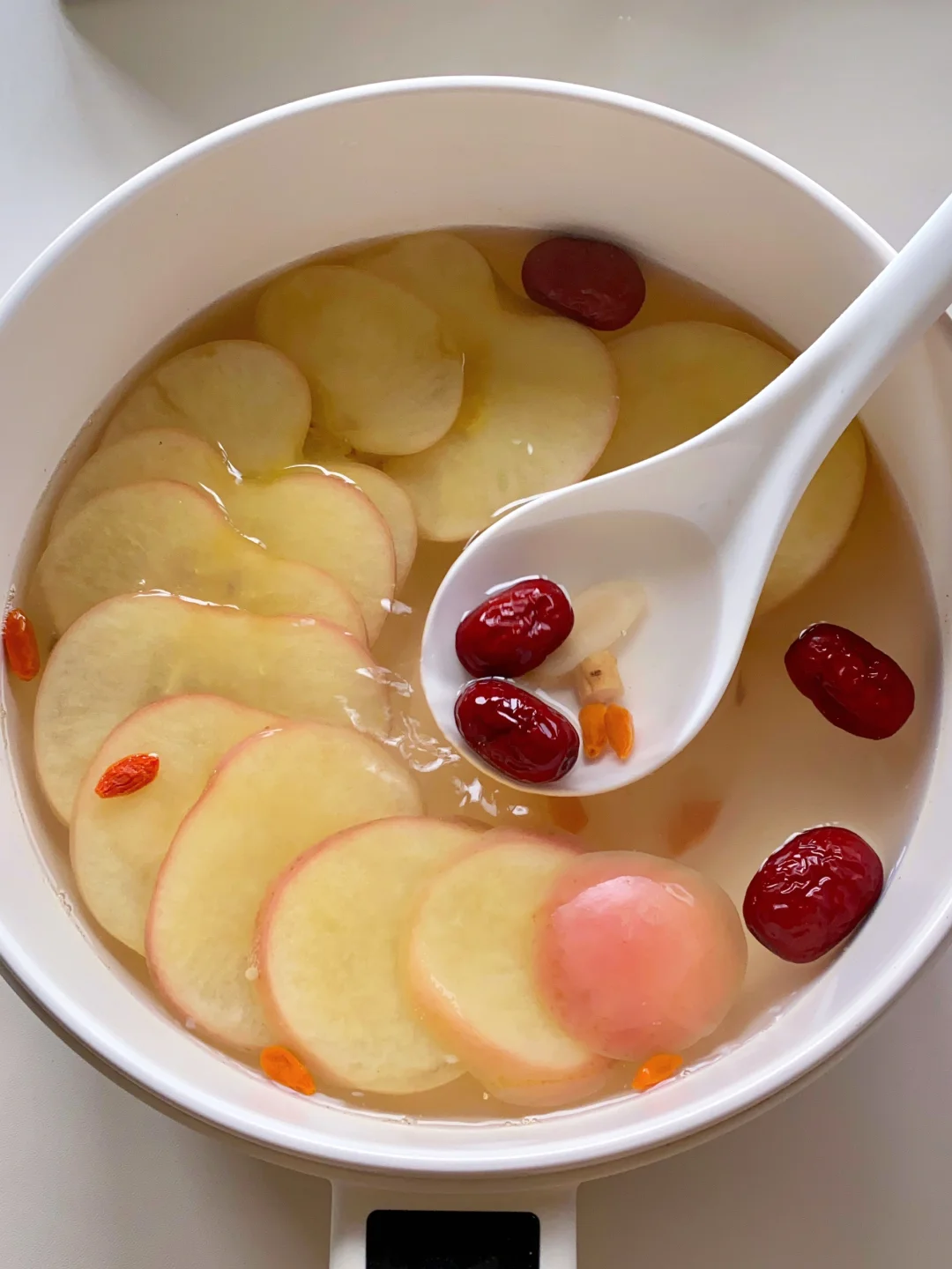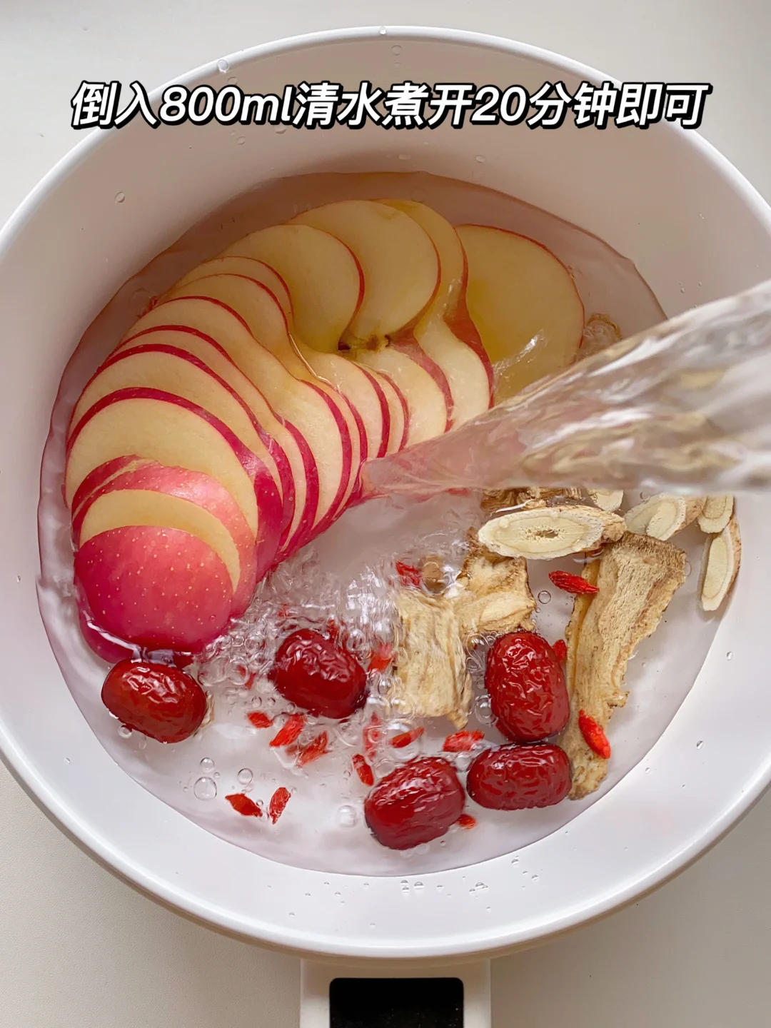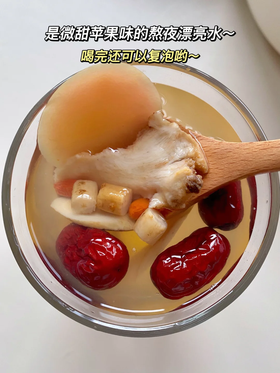 隔壁的👩⚕️姐姐说这是她们科室都在喝的熬夜漂亮水! 伊能静同款苹果六味补气水!红枣、黄芪、党参和当归都是经典的好食材!对皮肤和身体都很友好! 经常熬夜、小脸蜡黄、气色差的姐妹可以日常煮水泡着喝,甜甜的!! 📝食材:苹果半个、当归3片、黄芪5g、党参3g、红枣5颗、枸杞适量 🍵做法:食材洗净放入锅中,倒入800ml清水煮开20分钟即可,喝完还可以复泡哟~ 补气🩸不要太友好!是微甜的苹果味、很好喝!! 煮一壶可以喝一整天!坚持喝元气满满!![派对R]