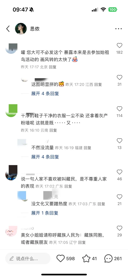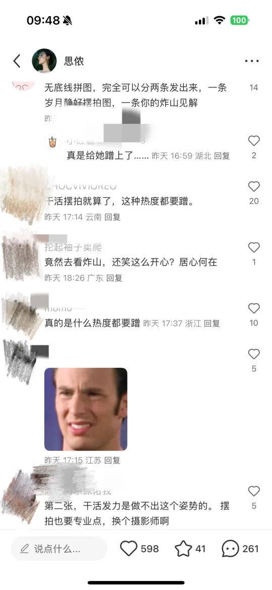 几百条留言下更多的关注的是我在蹭流量、摆拍