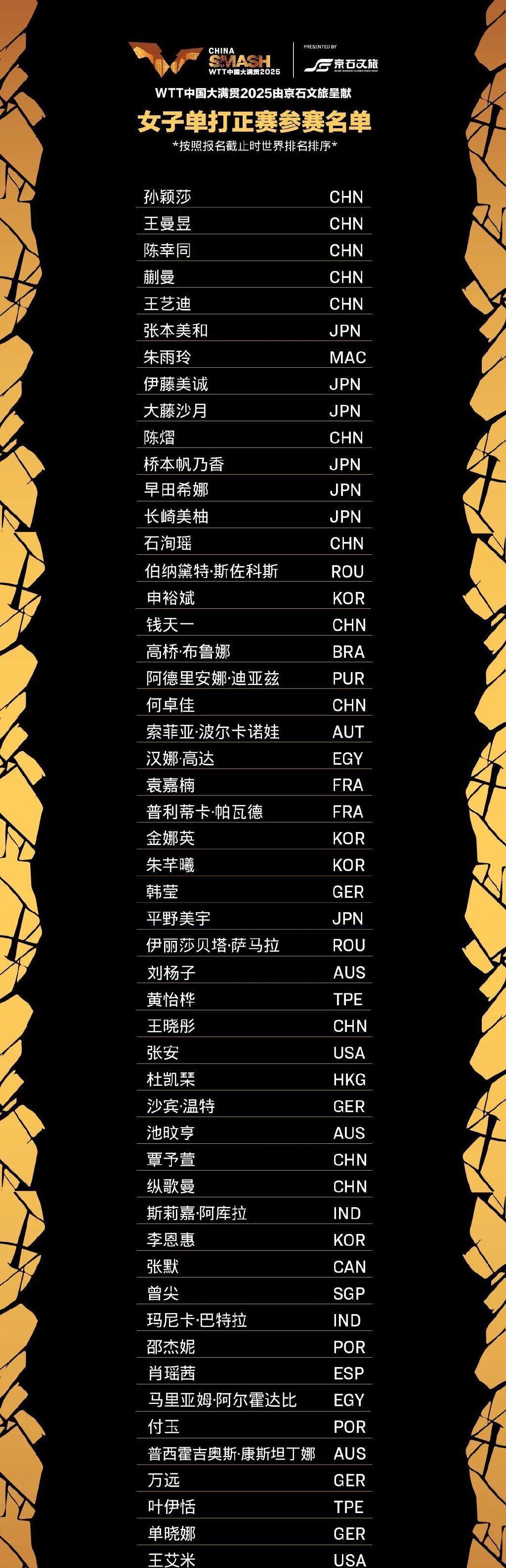 抽签时间已确定! 将于9月25日开战的WTT中国大满贯抽签仪式已确定将在北京时间