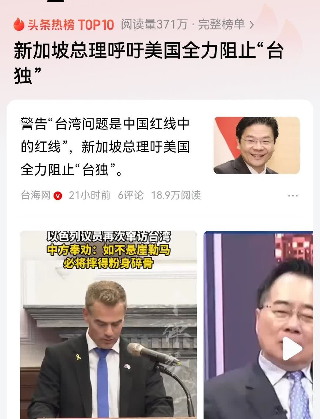 多长几个心眼儿吧,外面很多人说的话都是有毒的!你从表面上听,这是为咱们好。 全力阻止台独,这句话还是新加坡总理说的。 您第一印象是不是觉得这个人挺好,他反台独,那就是咱们的朋友。 可是国际政坛上没有那么简单。 有没有一种可能呢?这个人他嘴里说阻止台独。 真实的目的就是想维持住现状。 搞不统不独那一套。 他让美国压制住台独不要乱搞。 本质上就是想尽一切办法阻止大陆进行武统。 他的本意就是不给咱们武统台湾的借口。 如果他的真实想法是这样。 那就是包藏祸心,所以说多留几个心眼儿吧。 外面人的话,要多拐着弯儿想一想!聊热点