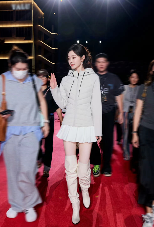 虽然也不是八月热天,但是也不至于冬天就来了吧,旁边人还在穿短袖,宋轶就已经穿上了羽绒服,外加一双高筒靴子,妥妥的寒冬妆造。