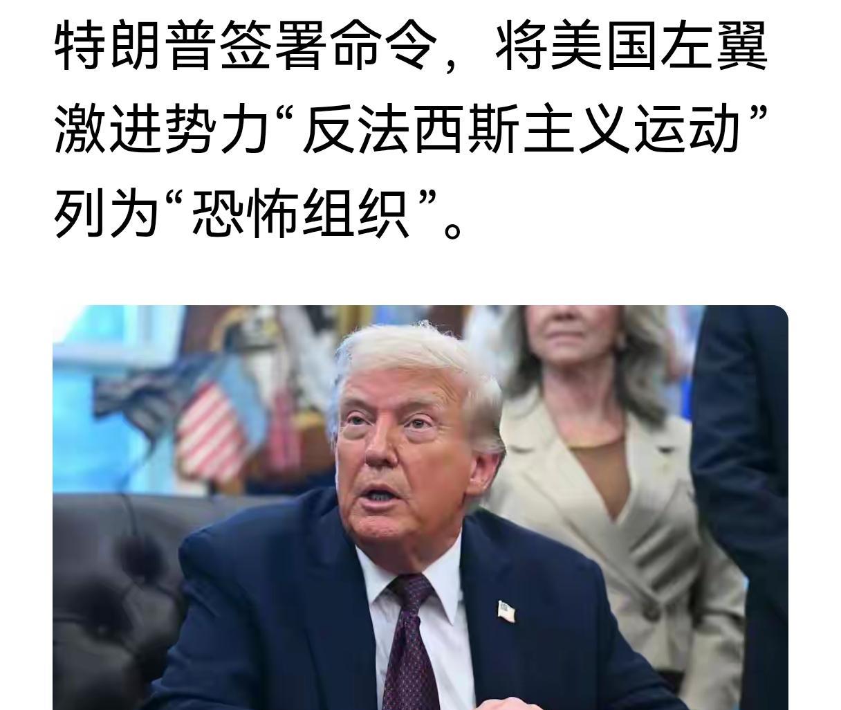 特朗普将美国一个松散的社会团体美国左翼激进势力“反法西斯运动”列为“恐怖组织”,进行封杀!网友称:从名称上看也不可能是。 而特朗普认为:“查理.柯克”遇刺可能与这个“反法西斯势力”有关;可是美国大多数人都不这样认为。 有美国媒体报道:刺杀“查理柯克”的嫌疑人全家都是特朗普的支持者。嫌疑人也是共和党的支持者。 有网友调侃,按照特朗普的逻辑,美国民主党和共和党才是世界“最大的恐怖组织”。当然还有以色列的内塔利亚胡政府。