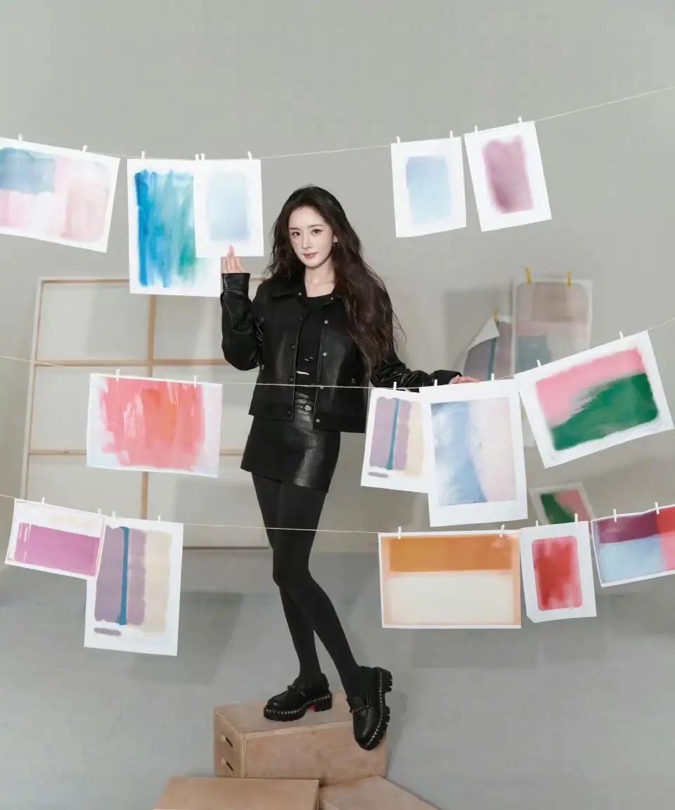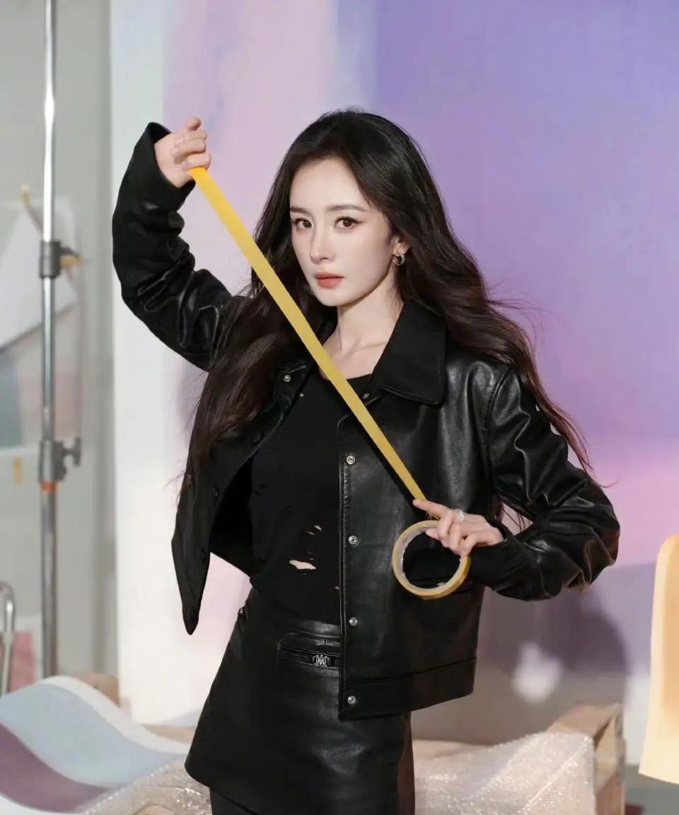 杨幂 今晚直播酷帅全黑造型,又美又飒~