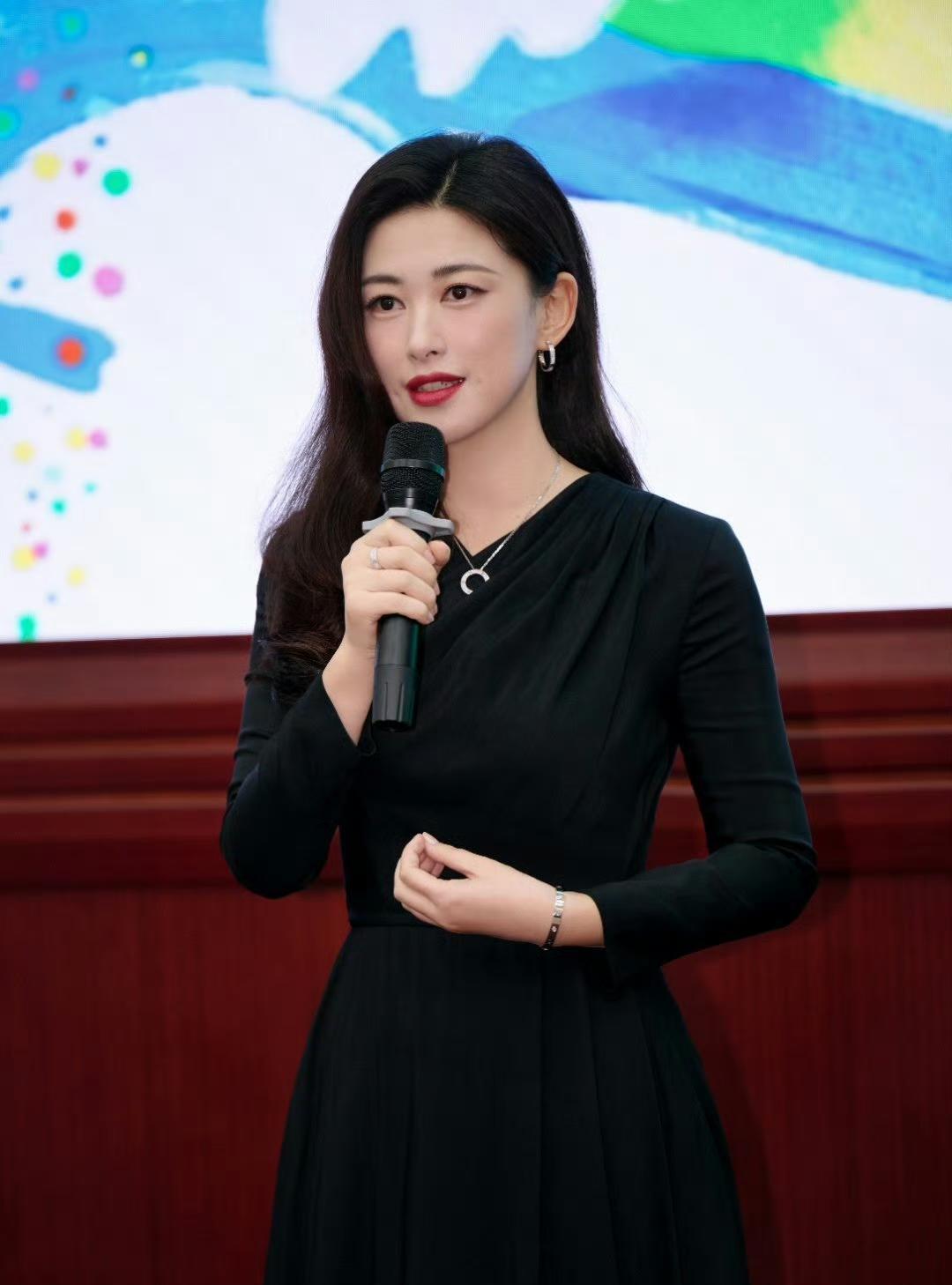 朱珠一袭小黑裙出席中法环境月开幕式活动
