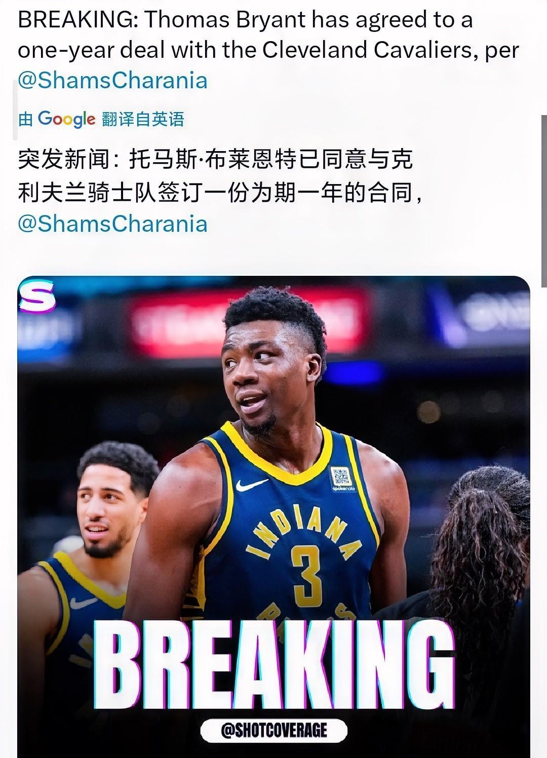托马斯布莱恩特以一份非保障合约加盟骑士! 据shams报道:消息人士告诉ESPN