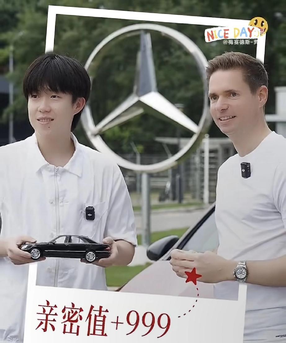 终于等到你! 奔驰之前的代言人跟老板拍过视频吗? 这也太宠了吧! 这也是王楚钦最开心的一次拍摄。 奔驰的帽子也这么好看呢, 跟乒超王楚钦左叠叠右叠叠的大毛巾有异曲同工之妙。 王楚钦阳光帅气气质出众! 一口流利的英语, 虽说有点大碴子味, 但是说的相当好了,