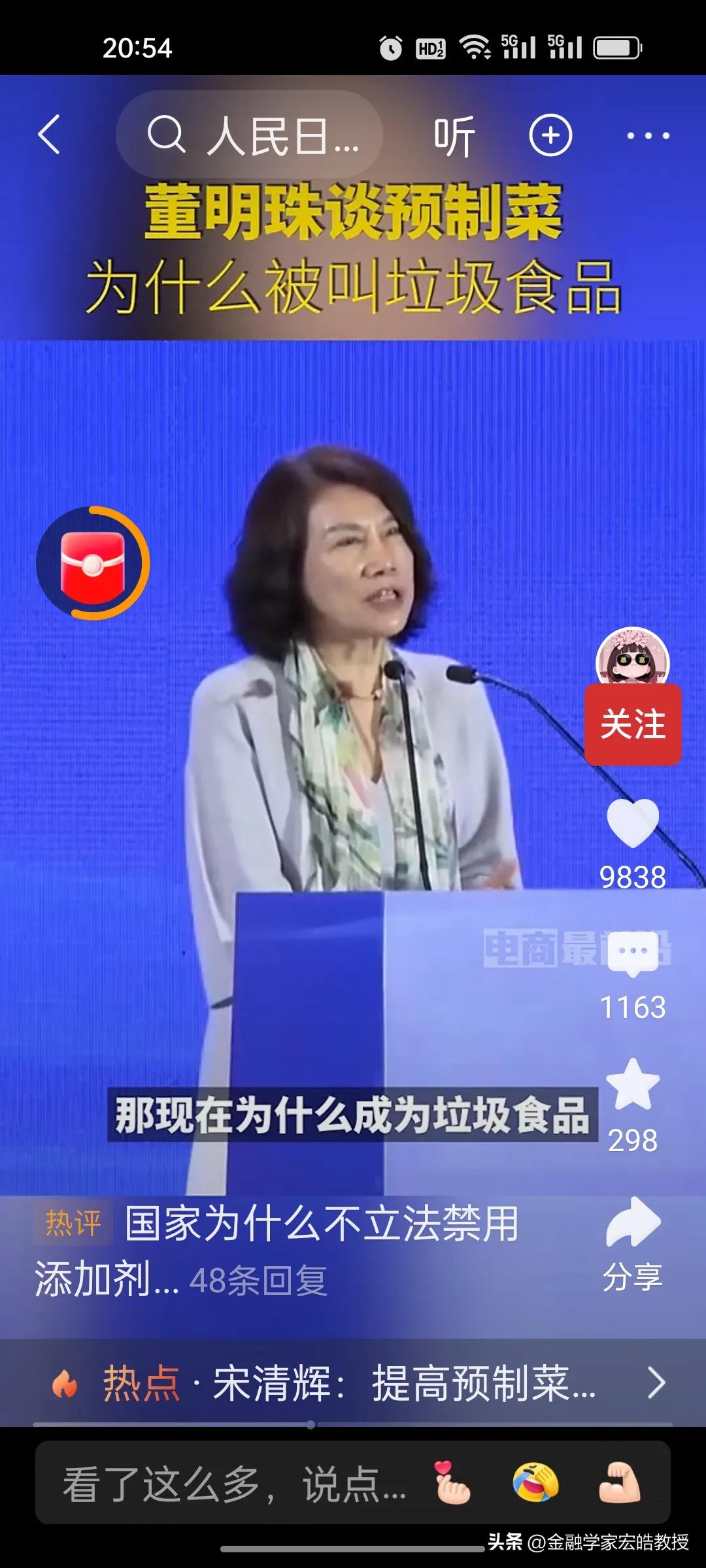 董明珠太敢说!看下图,董明珠认为预制菜就是垃圾食品,过去吃早茶,凤爪是凤爪的味道,但是现在我们靠的是添加剂来解决我们的口感问题,所以吃的东西大部分都是一样的。 董明珠一向敢说,她是一个对质量品质较真的人,绝对不会糊弄消费者。格力要是开辟餐饮赛道,有格力空调的口碑在,估计生意肯定如火如荼。