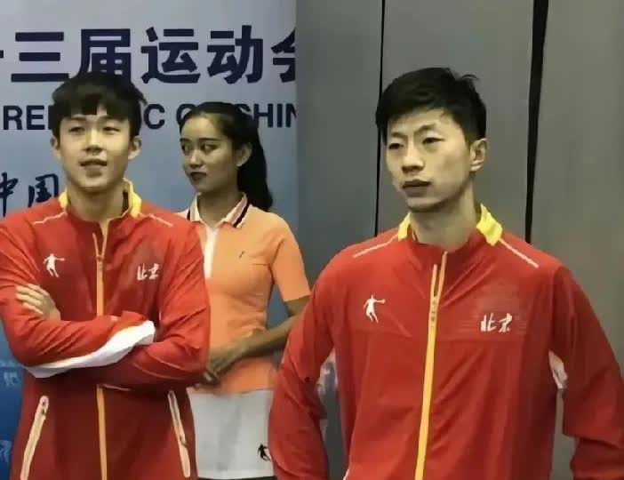 王楚去拿着个奶瓶,搁马龙旁边喝脉动。他小时候跟在马龙身边老撒欢了,马龙老是打赢,