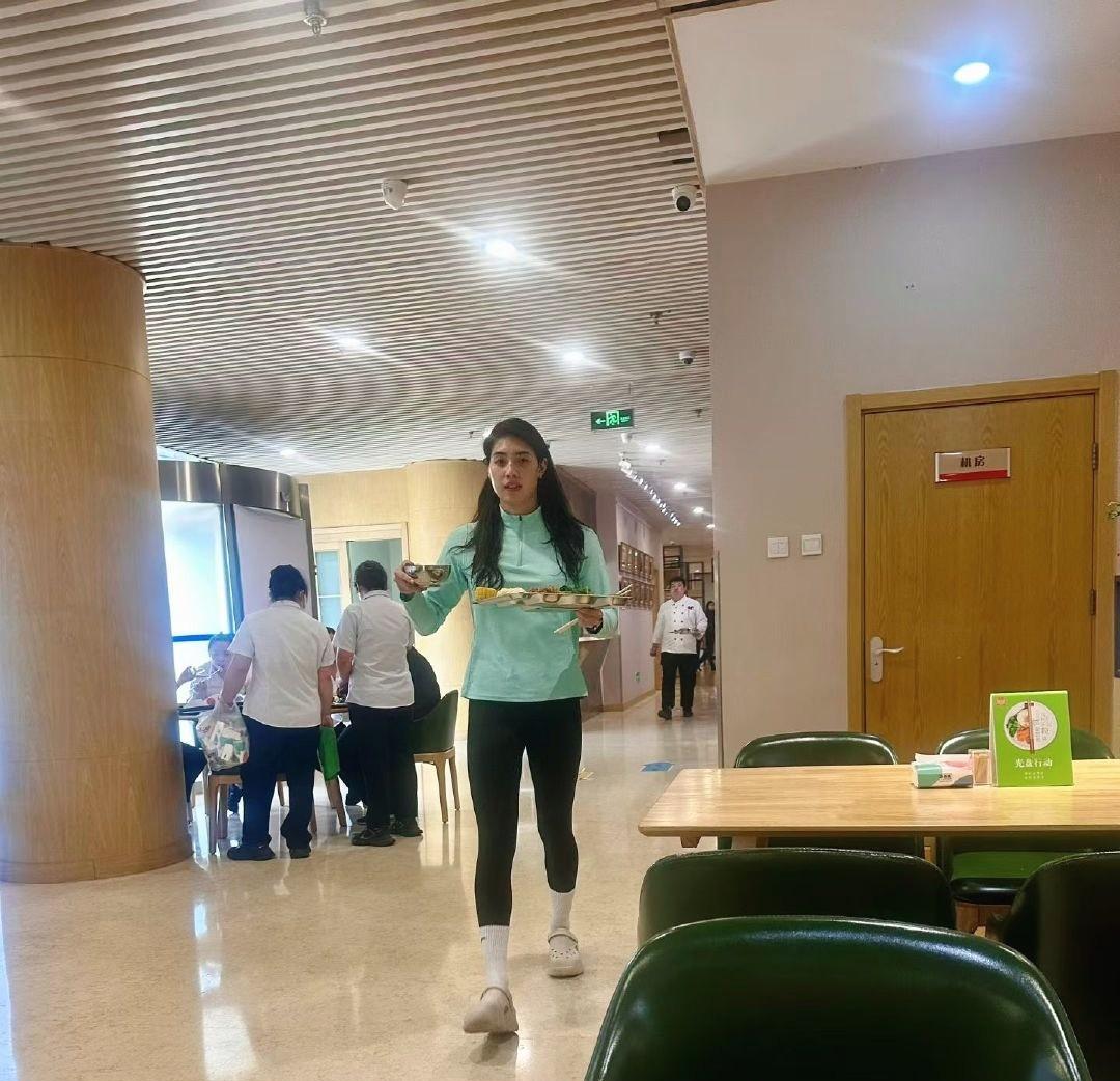 这是张雨霏13点训练完后,全餐厅她最后一个人进餐的画面。 张雨霏早上的训练从8点开始,主要训练科目就是以水上和体能训练相结合。 图上看张雨霏几乎全吃都是青菜,她也是肉眼可见的瘦了。 13点最后一个进餐厅吃午饭,她为了恢复成绩就要比别人付出更多的努力和汗水。 最美雨蝶张雨霏为了理想成绩也是拼了。 大家觉得体总的这伙食标准如何呢?