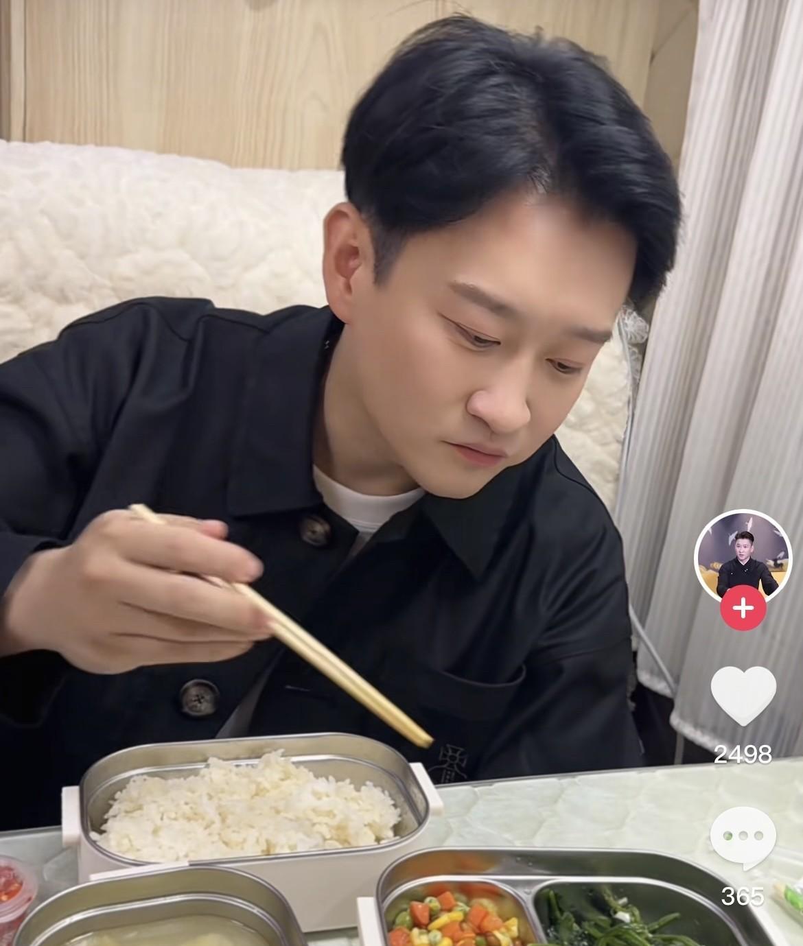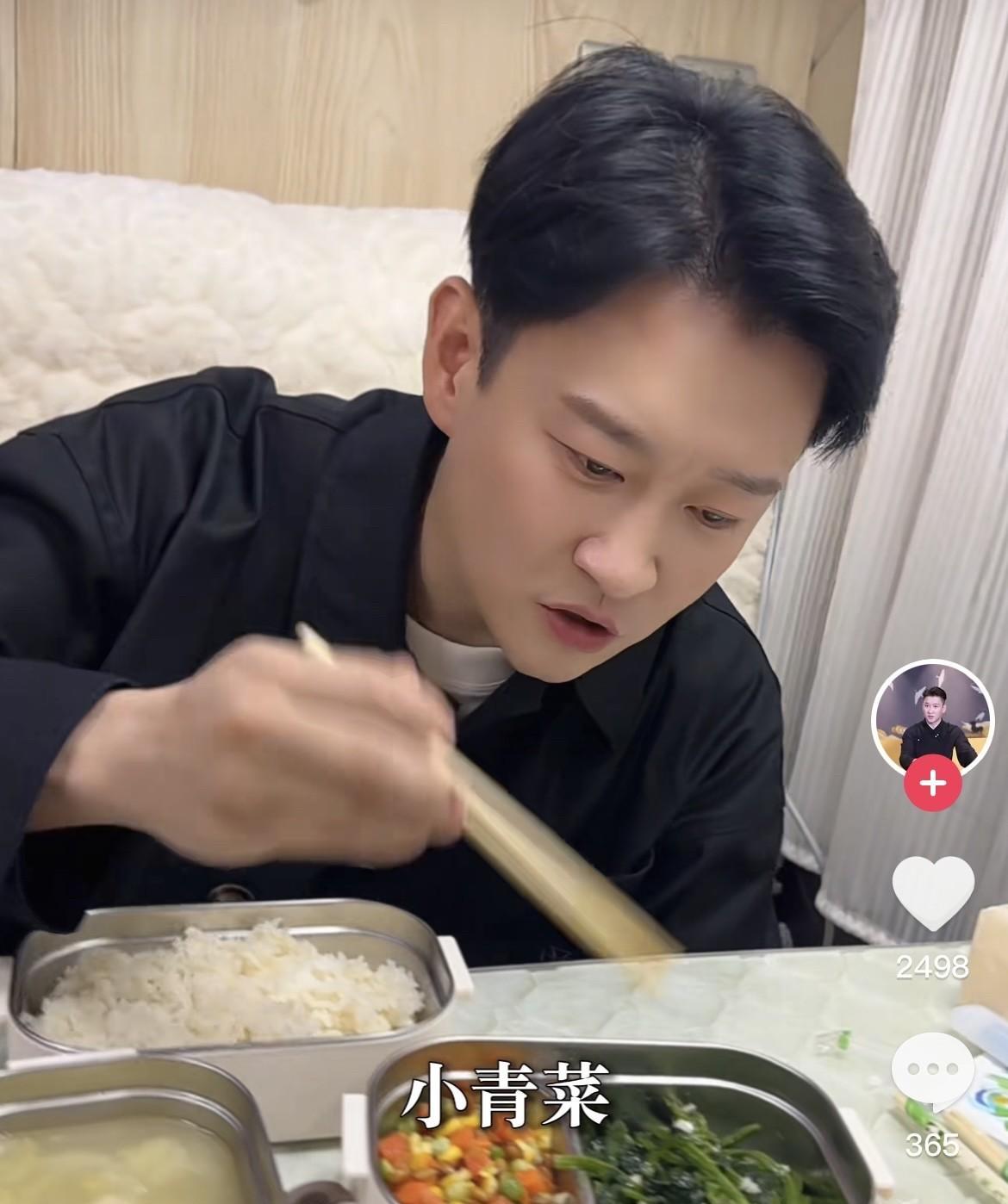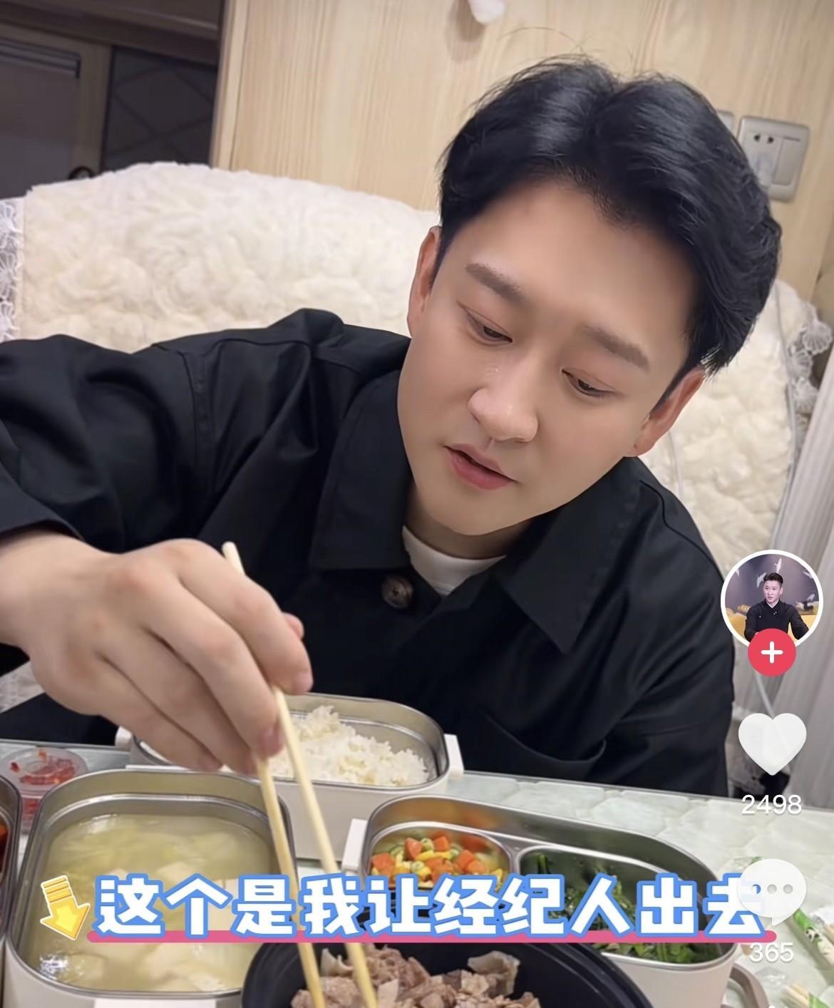 曹云金晒横店拍戏吃的盒饭。单从餐盒看,他吃的就不是普通的剧组盒饭。 曹云金的盒饭是两荤两素一汤,汤是白菜豆腐汤,两荤是西红柿炖牛腩、鸡肉炒蘑菇,两素是炒青菜、胡萝卜丁玉米粒加青豆。 一个喝茶要喝武夷文华禹燕昭王(两万元一盒,一盒一泡)的主自然不能只吃两荤两素,曹云金让经纪人去买牛肉,说是给团队加餐。我没吃过这种牛肉,不知道它是卤出来的,还是炖出来的?曹云金边吃边说,牛肉多香啊!