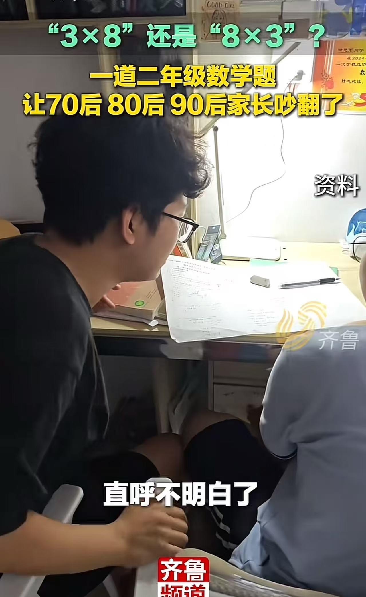 最近,一道小学二年级的数学题让70后、80后、90后的家长吵翻了!到底是3×8还