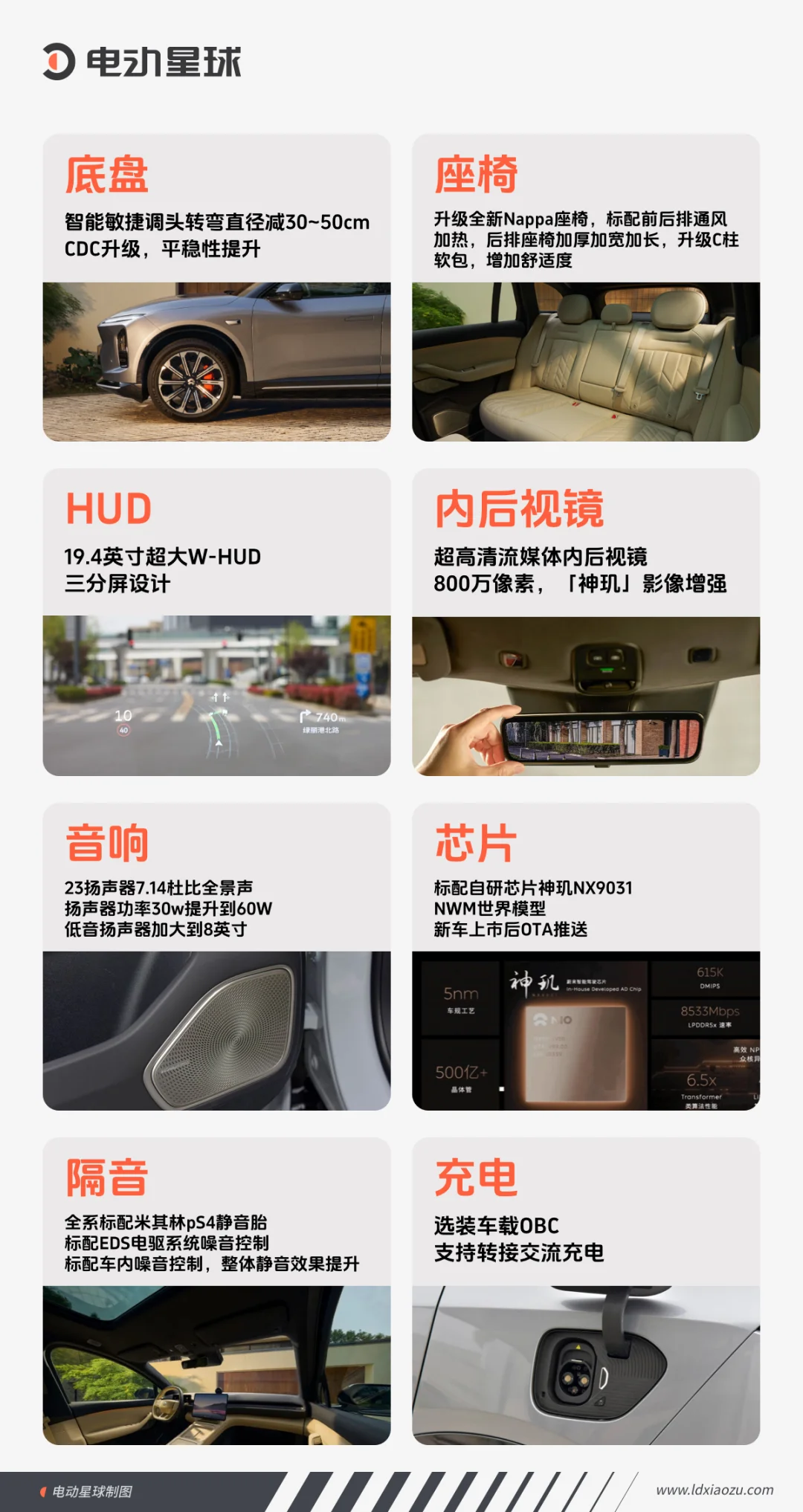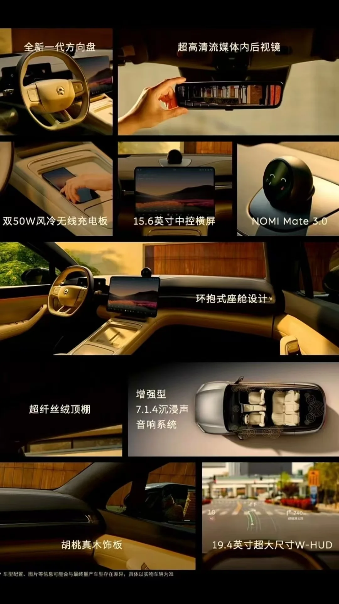配备包括等效300线激光雷达、4D成像雷达在内的29个传感器,搭载蔚来自研神玑NX9031芯片,支持全域车道级导航。还带有转向盲点影像等功能,画面可在19.4英寸的W - HUD抬头显示中呈现。此外,还有全景天幕、流媒体内后视镜、23扬声器7.1.4沉浸声音响