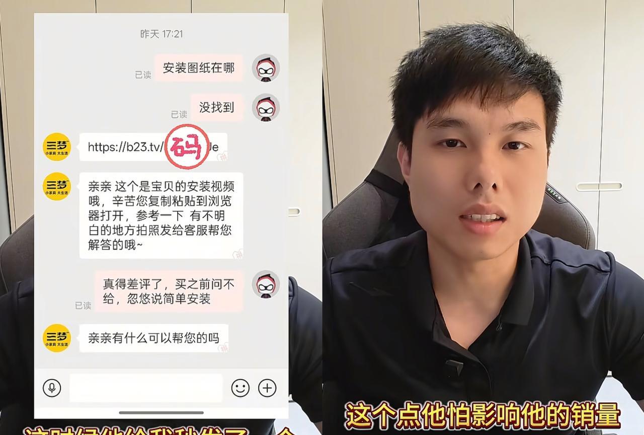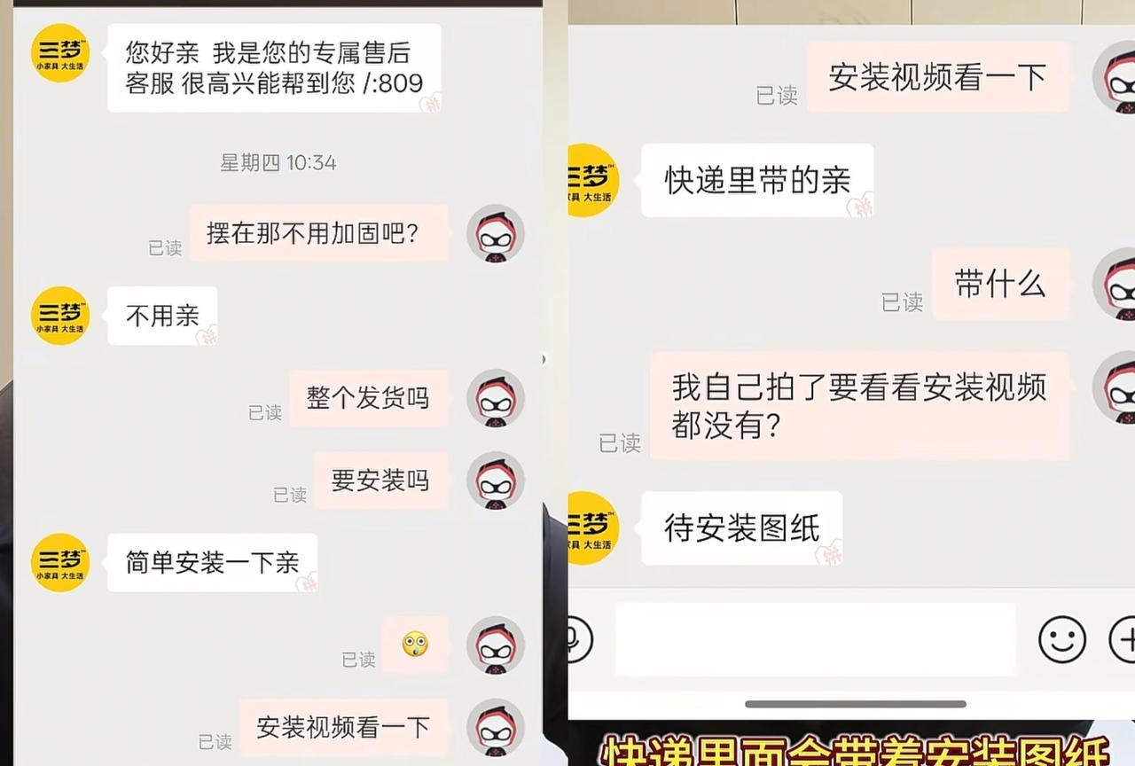 没想到,肥娟夫妻就发个视频吐槽一下,突然就被几百个人骂他蠢,真是够冤的。 其实肥公真的没想过要去网暴谁的,他作为消费者,花了386块钱买了个鞋柜,他在下单前咨询客服需不需要安装的,要是需要安装,那就发个安装视频过来。 然而,客服没有给他,应该是担心消费者怕麻烦,影响销量,这点肥公在后面视频也有提到。 只是让肥公不能理解的一点,他都已经下单了,客服还是没有给他安装视频,说会随货发安装图纸过来。 结果,肥公收到货打开一看,啥都没有,就一推零件,他就发个视频吐槽一下,这很正常,偏偏就被一些网友误解了,说他蠢,动手就会的事都弄不明白。 事后,我去看了肥公对这件事的回应,他把前后经过都放出来,很明显是商家有错在先,为了忽悠消费者下单,回应的问题一套一套的,后来也是怕麻烦会引起退货,才不得已给肥公发安装视频的。 你看,明明都有安装视频,为啥非要等顾客收到货主动来问才给,而不是下单后就发过来,从这一点就能看出,这家店的服务有待提高了。