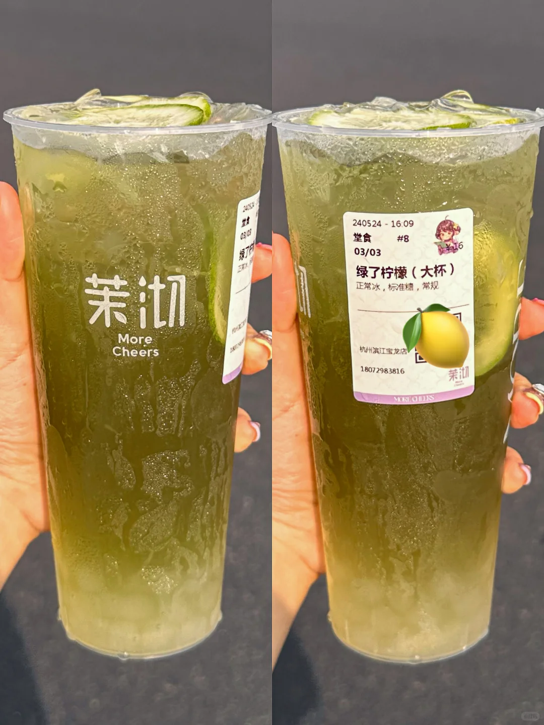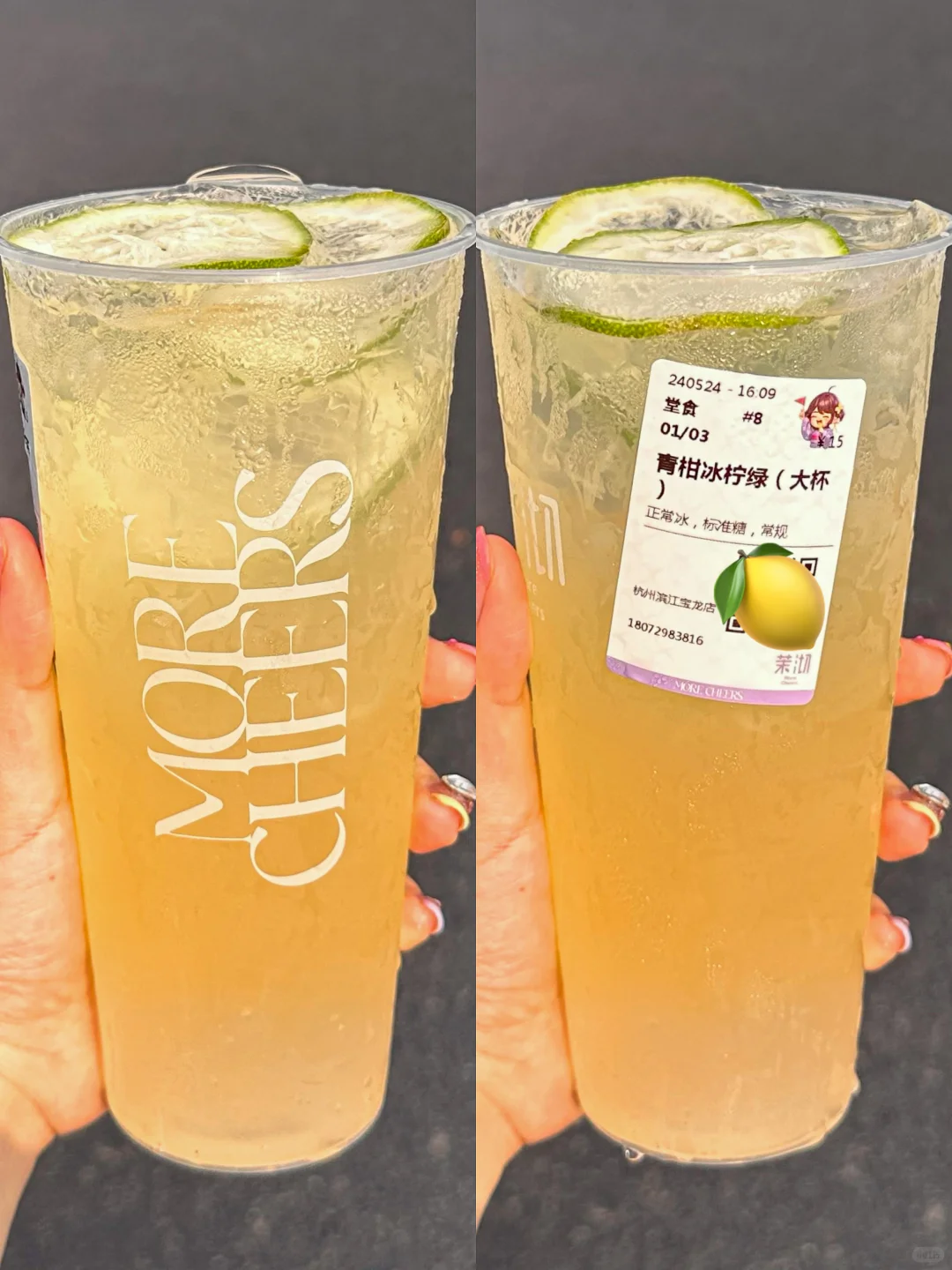 一口透心凉!!这杯自带啵啵 推荐+椰果(还可以点绿茶茶底✨)搭配鲜榨柠檬汁和香水柠檬,巨巨巨清爽好喝!!