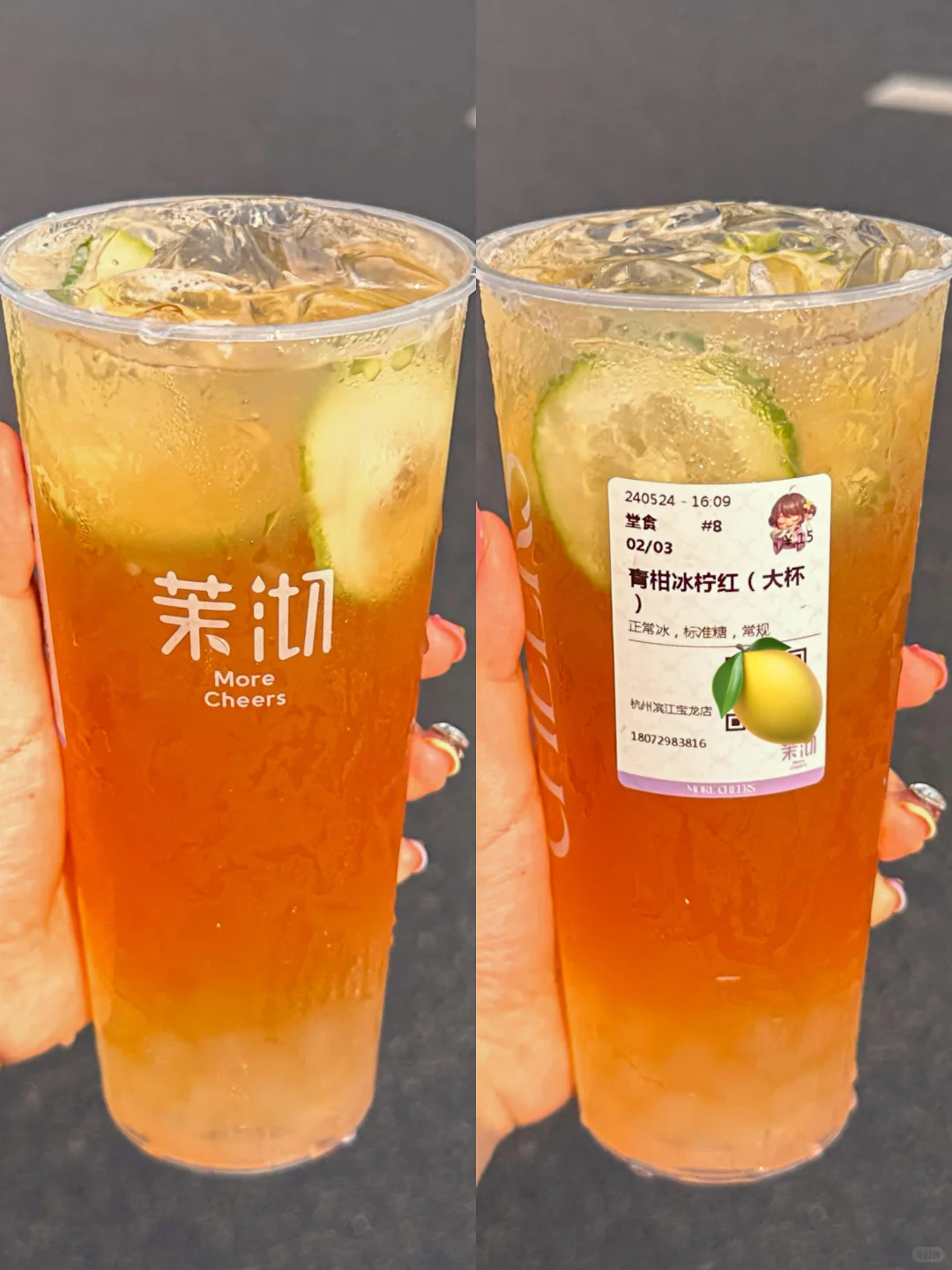 泰式绿茶+茉莉绿茶🍵双重茶底好特别!!还有小青柑汁融合的刚刚好 一口下去清爽到不行!回味都是茶香巨解渴!!