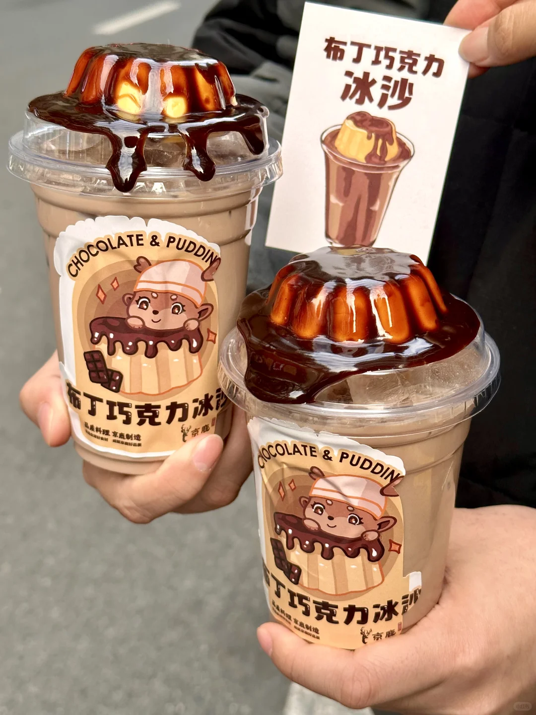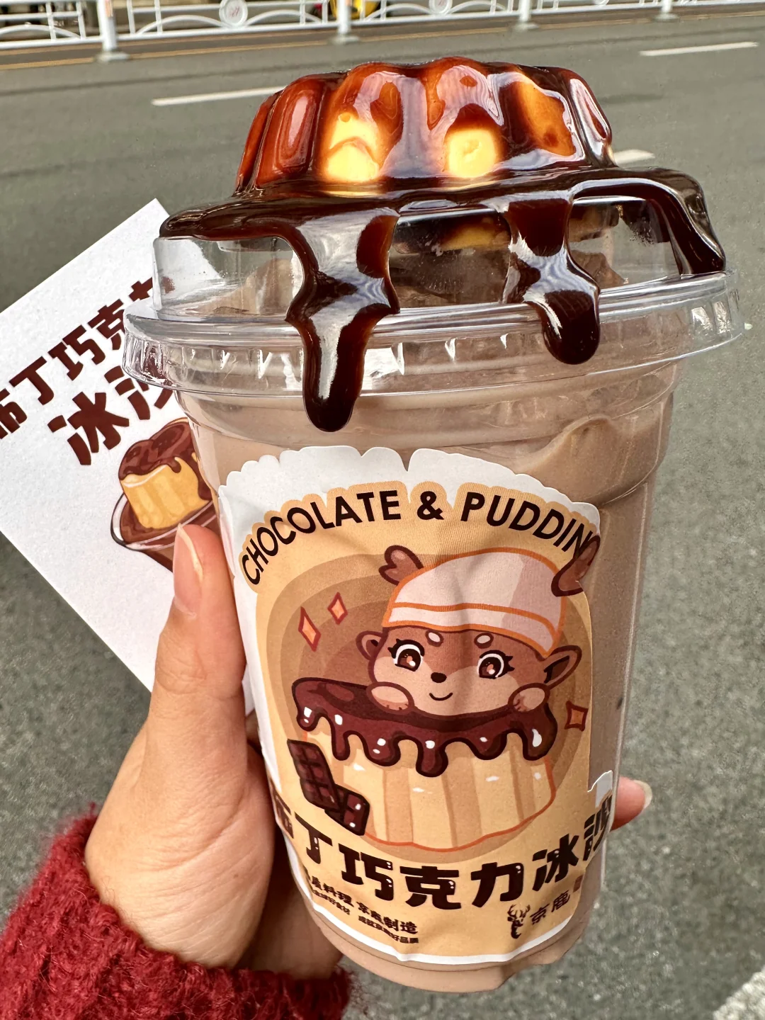 巧克力可可布丁🍮!!胖嘟嘟的布丁+可可沙冰+醇厚的巧克力酱!一口下去香甜浓郁…谁懂这一口的含金量😭