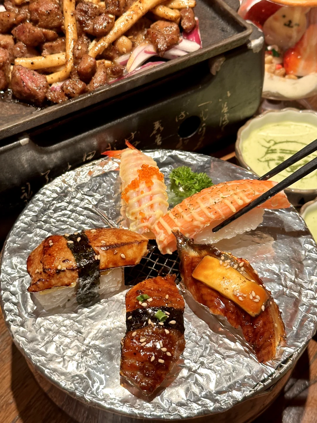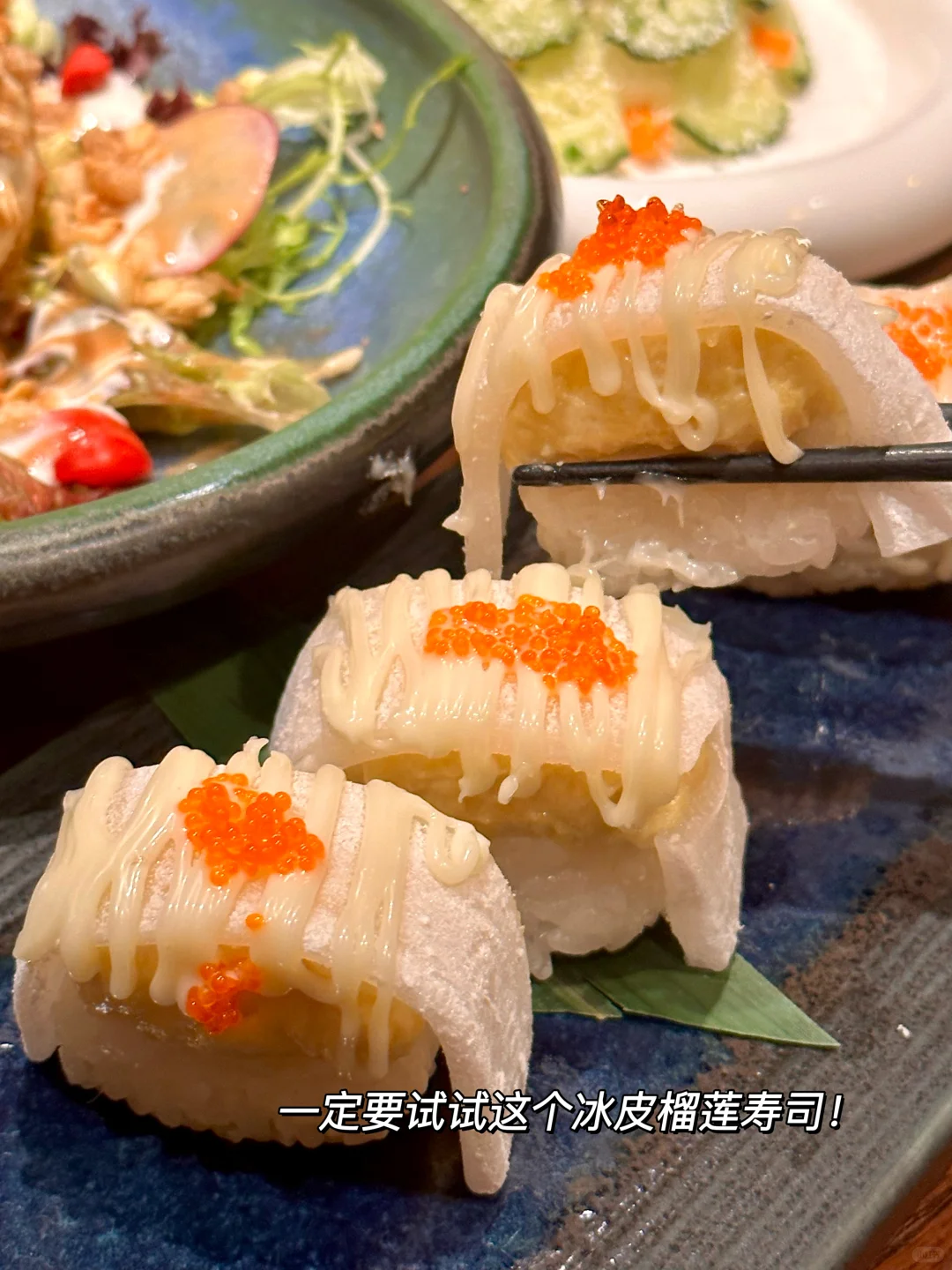 这家(京鹿)我心中长沙可以排前三的日料小店!开了8、9年了 每次来都有种在漫画里用餐的感觉!强推这个榴莲冰皮寿司 软糯香甜!草莓芭菲杯精致迷人到舍不得下嘴🤤还有苹果气泡水、圣诞树土豆泥、黄油柿饼…全都好看又好吃!!