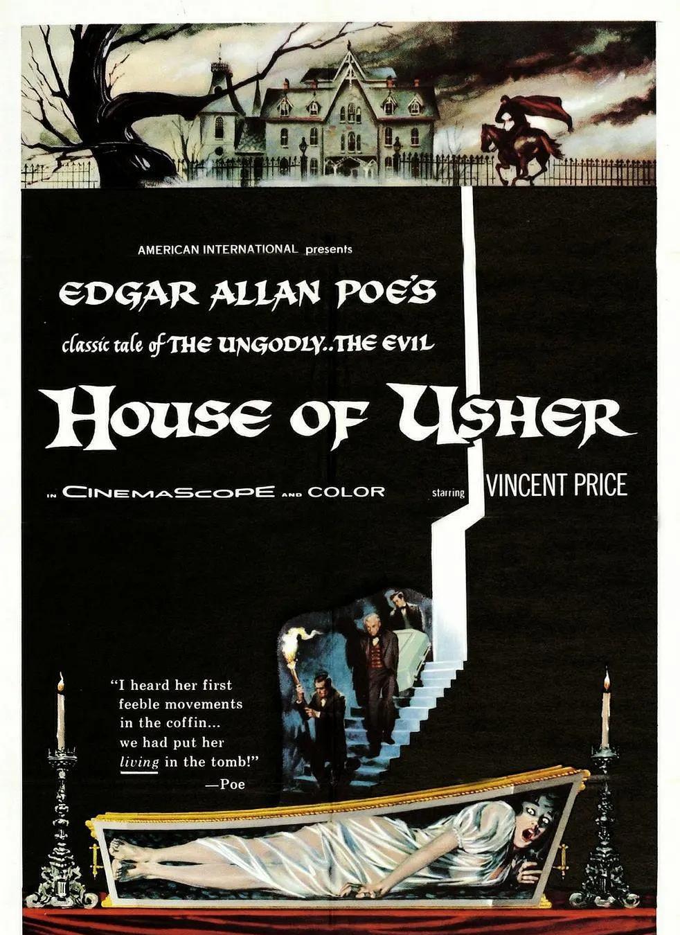 被诅咒的古宅 久闻爱伦坡大名,就是没看过他的作品,好奇心总是要被满足的,《厄舍古厦的倒塌》就是我和爱伦坡零距离接触的第一部电影。 看起来原作还挺受欢迎,被多次翻拍成电影,这次选择的是1960年美国拍摄的版本,这个版本据说在原著的基础上做了一些改变。 影片讲述了罗德里克与妹妹麦德琳相依为命, 在他们居住的厄舍古厦里只有一位年老的管家布里斯托陪伴着兄妹俩。 一天,远从波士顿过来探访的年轻人-菲利普来到了这所古宅, 因为与麦德琳相恋, 想要把她从哥哥身边带走,。 罗德里克千方阻挠, 并告知菲利普,他和麦德琳命不久矣,不可能离开这栋遭受诅咒的房子。整栋大宅摇摇欲坠, 阴风阵阵, 菲利普发现墙体上出现了巨大的裂缝,随即,掉落的巨大吊灯差点让菲利普丧命。 千辛万苦,菲利普终于见到了麦德琳,虽然看起来她的状态并不是太好,但是和菲利普之间的爱情誓言她还没有忘记。 忧心忡忡的麦德琳带着菲利普来到阴森的地下室,这里存放着家族成员的棺椁,可怕的是,这里面还有罗德里克和麦德琳的位置,兄妹二人的最终归宿似乎就是这里。 罗德里克告诉菲利普,由于祖上连续几代人作恶多端,所以这所古宅已被诅咒,不仅连续几代人都是短命,而且古宅周边的生态环境也变得十分恶劣。因为诅咒的存在,这栋古宅随时都可能坍塌,而他和妹妹也会葬身于此。 菲利普不信这个邪, 他坚决地要带麦德琳离开,麦德琳深受感动,决定和情郎一同出走。可是。罗德里克又出现了,在一番争吵后,麦德琳突然暴毙。 菲利普痛不欲生, 无法接受她的死去, 但在罗德里克的催促下,只好把麦德琳放入地下室的棺椁之中。 心灰意冷的菲利普准备离去,在与布里斯托的谈话中他突然发现疑点。菲利普冲入地下室打开棺椁,却发现玛德琳的遗体不翼而飞。 菲利普质问罗德里克,罗德里克只是一味地劝他离开,不然会有生命危险。 此时,密室棺椁中的麦德琳已化身魔鬼,她发出哀嚎声,终于破棺而出。 菲利普闻声赶来,发现麦德琳遗留的血迹,他便顺着血迹寻找麦德琳的踪迹,过程中他发现厄舍古厦就像一个巨大的蜂巢,到处都是暗门。 麦德琳出现在罗德里克面前,化身魔鬼的她要亲手掐死自己的哥哥,她推倒了循迹而来的菲利普,紧紧地掐住了罗德里克的脖子。 此时,古宅开始坍塌,麦德琳碰倒的烛台点燃了房间,布里斯托为了搭救罗德里克,被落下的砖石埋住了。 菲利普仓皇逃出了古宅,望着被熊熊烈火燃烧着坍塌的建筑物,惊魂未定。 一部哥特风十足的电影,布景和妆容古色古香,多少掩盖了剧情上的一些缺陷和演员们表演的问题。 一直认为布里斯托这个角色会爆出一些意想不到的彩蛋,结果让我有些失望,只是一个忠心耿耿、小心翼翼的老管家,所有的秘密一个字也没从他口中得知。