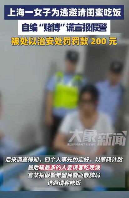 据大象新闻9月23日报道,一名女子打麻将输了之后,不愿意请客就直接报警,原本想着让警察来教育一番逃过请客,不料却“搬起石头砸自己的脚”了。 周女士(化名)有着几关系很不错的闺蜜,她们经常在空闲的时间逛街旅游,然而那天下午,周女士接到了她们的电话说,打麻将,周女士正好闲着没事干于是就答应了。 说白了就是换种方式“结账”,反正她们四个人吃饭也还不了多少钱,这样一来也更有人情味,就这样都同意了之后就愉快开局。 在打的过程中,她们四人都十分的开心,然而就在要结束的时候,周女士发现在就数自己输得最多了,于是她就在心里面暗自盘算,需要自己掏钱请客心里面很不甘心,原本的信任和欢乐,她全抛在脑后,只想着如何逃避。 随后她就以自己要上厕所为由,出去给警方打了一通电话,她之所以这样做原因很简单,只要警察介入,局面被打乱,她就不用再请客了。 可现实很快给了她当头一棒,随后等警察赶到的时候,经过调查发现她们只是娱乐,并没有出现赌钱所以不属于违法,警方自然就不会追究下去。 但这属于报假警,所以警察就问这是谁报的警,面对质问,周女士先是死不承认,还推说可能是丈夫打的,可电话录音一听,就是她的声音,谎言不攻自破。 最后周女士因为报假警被依法罚款200元,讽刺的是,这笔钱几乎和她想赖掉的那顿饭差不多。她的算计不仅没成功,反而自找麻烦,钱没省下,还平白添了个处罚。 但法律的处罚只是一纸罚单,而她在朋友心里留下的背叛感,才是最难弥补的损失。原本几个人之间无话不说,但从现在开始自然就会出现了一层隔阂。 那么通过这件事情也告诉我们,交友的时候一定不要和朋友之间耍小心思,要被发现的话很尴尬,甚至还会连朋友也做不成的,对此你怎么看?