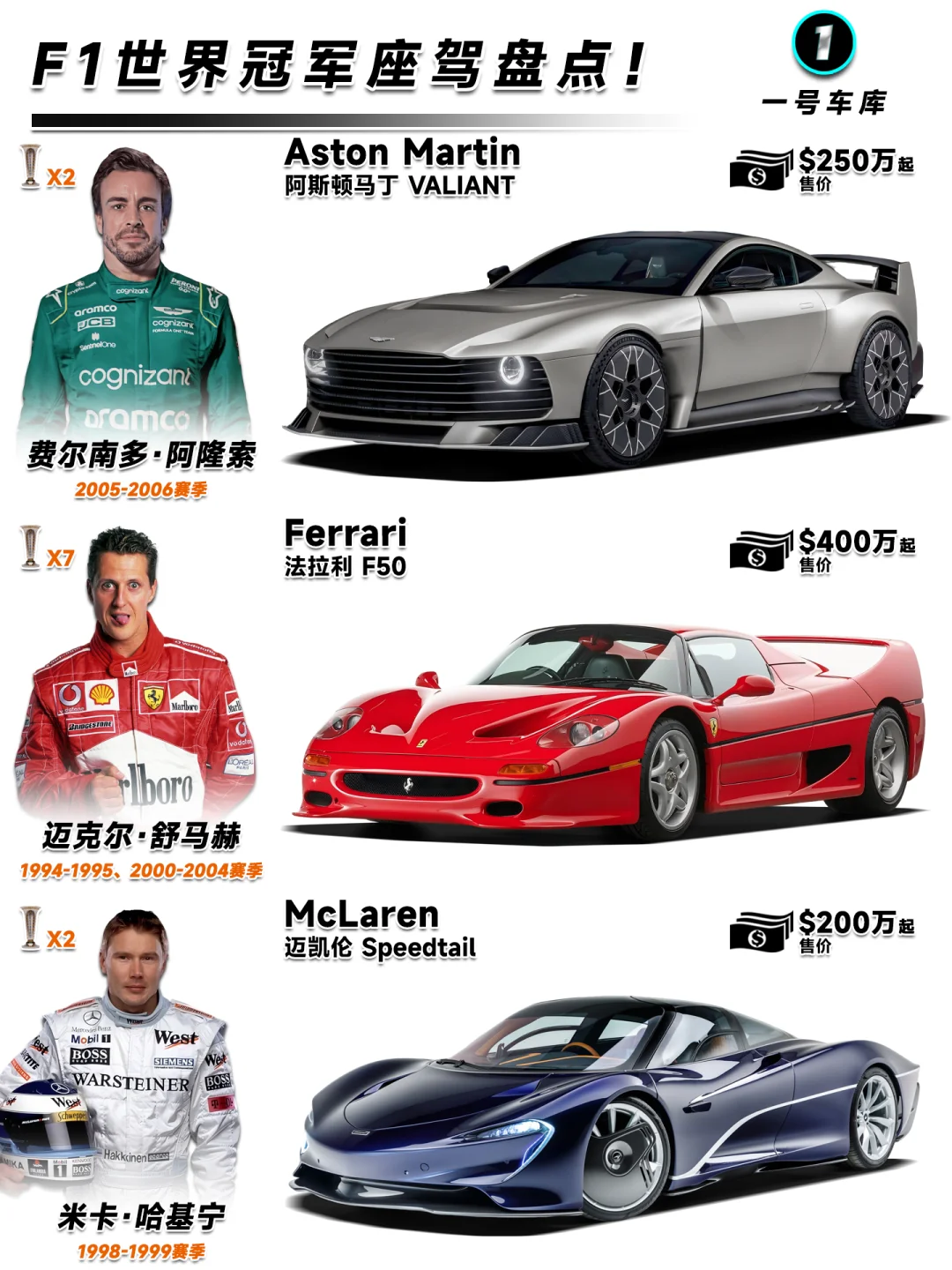 F1世界冠军座驾盘点,地表最强老司机严选!