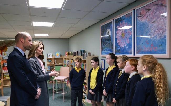 插播一条威尔士亲王夫妇[心] 在爱尔兰滨海城市绍斯波特, 去年发生了派对持刀行凶案暴乱事件, 威廉凯特与遇难儿童家属进行私人会面, 并走访当地学校以示慰问。 王妃以素雅的灰色长风衣套装干练示人, 那金灿灿的发丝在阳光下闪烁,