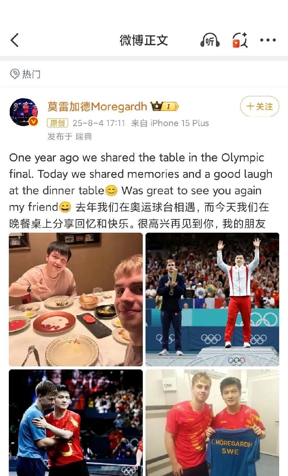 莫雷加德的路确实走宽了!打电话+请吃饭的神仙友谊。 其实莫雷加德早在2023年就打过乒超联赛,跟当时的世界前三(马龙、樊振东、王楚钦)搂着肩膀合影过,还一起逛了遵义的历史古迹,所以他对中国球员印象非常好。