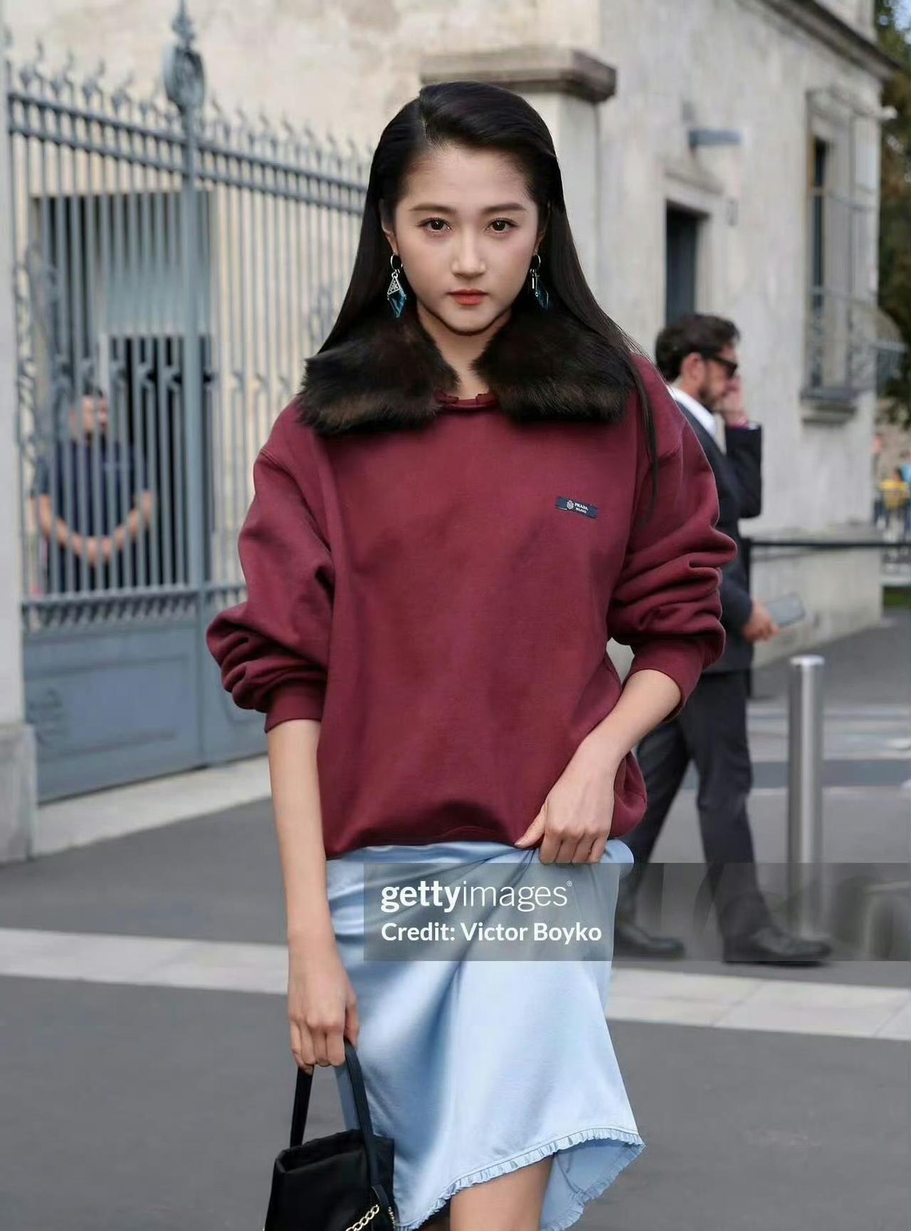 关晓彤在米兰时装周上的新造型,虽然脸部的状态看起来挺好的,但这大毛衣领子的衣服选的真的是太抽象了。